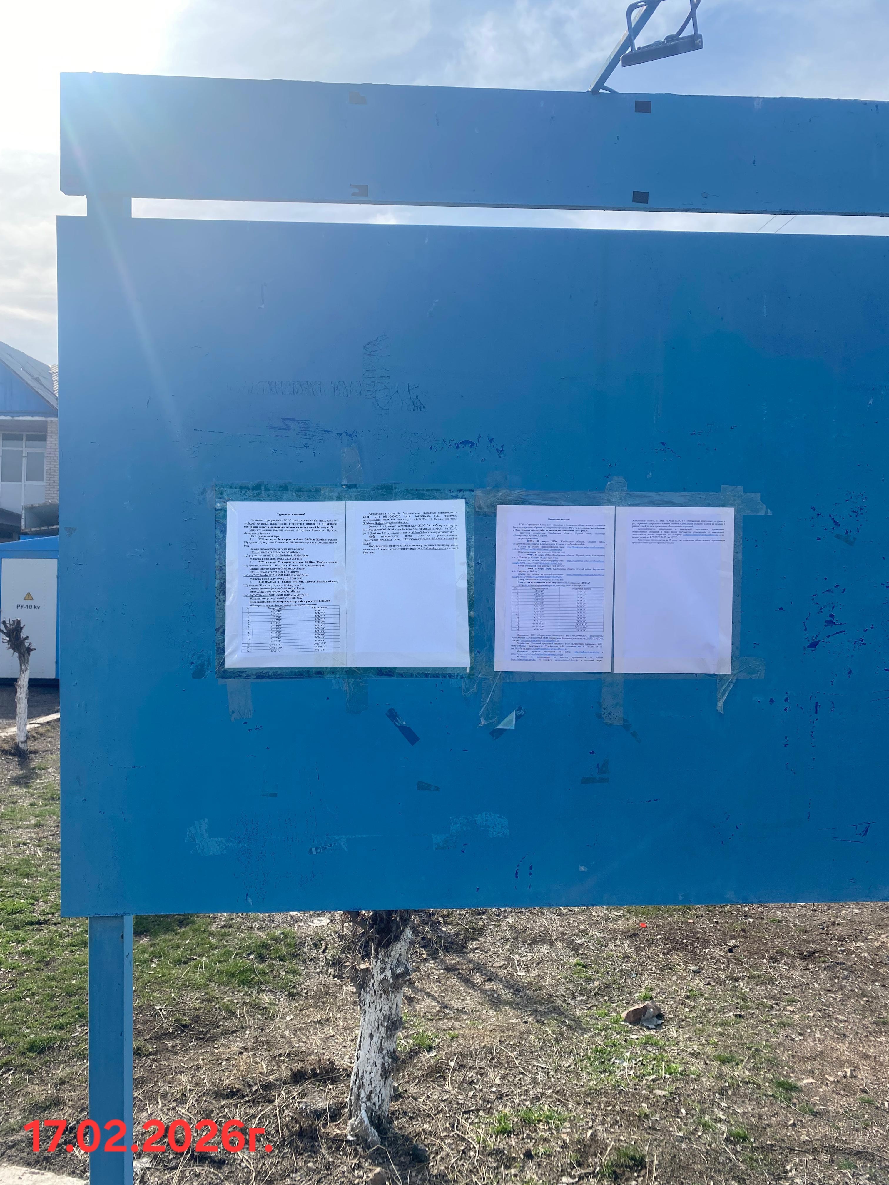 3. Общественные слушания организованны: Управление природных ресурсов и регулирования природопользования Жамбылской области, s.agabek@zhambyl.gov.kz,