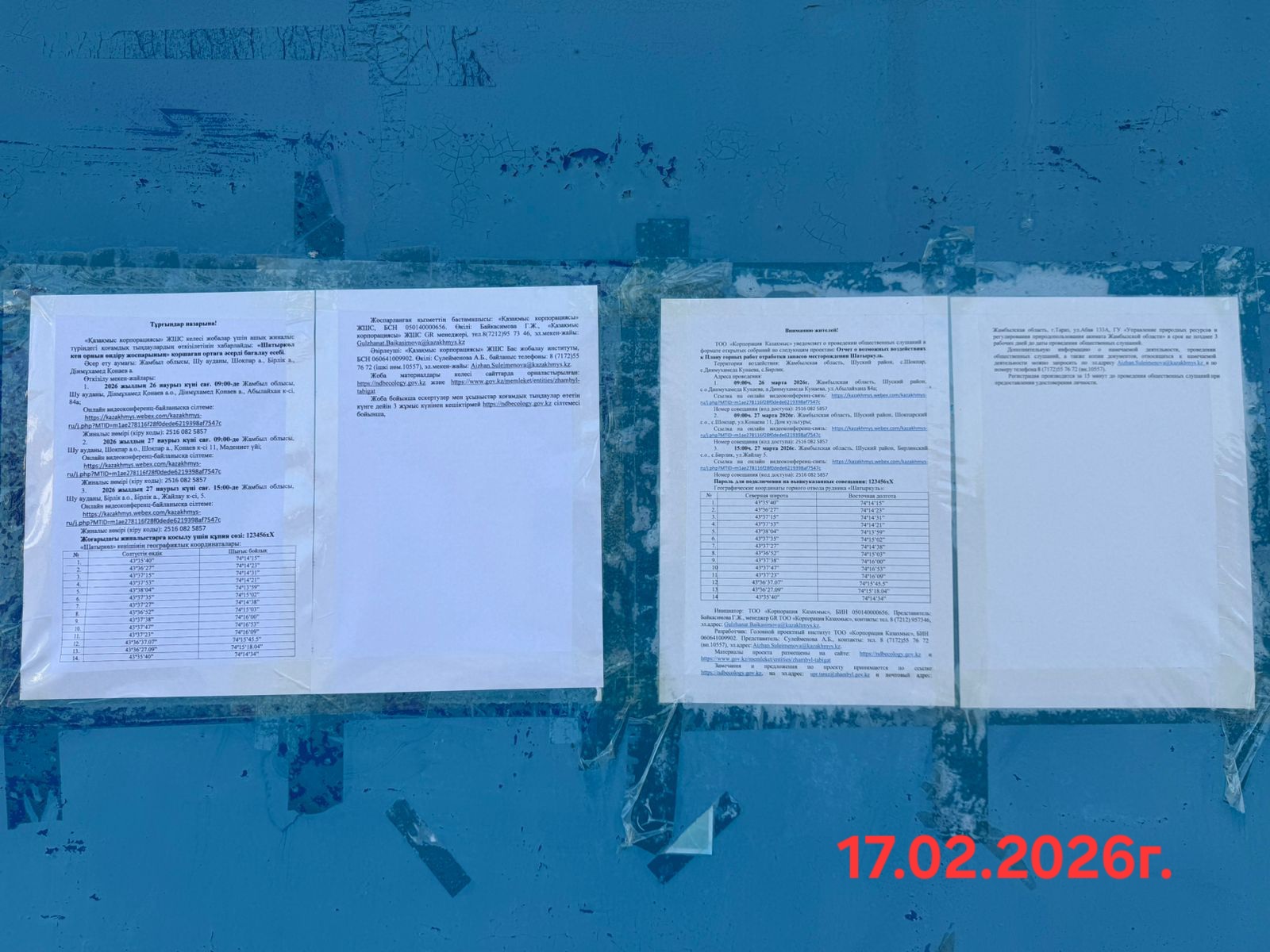 6. Объявление о проведении общественных слушаний на казахском и русском языках будет распространено следующими способами:
