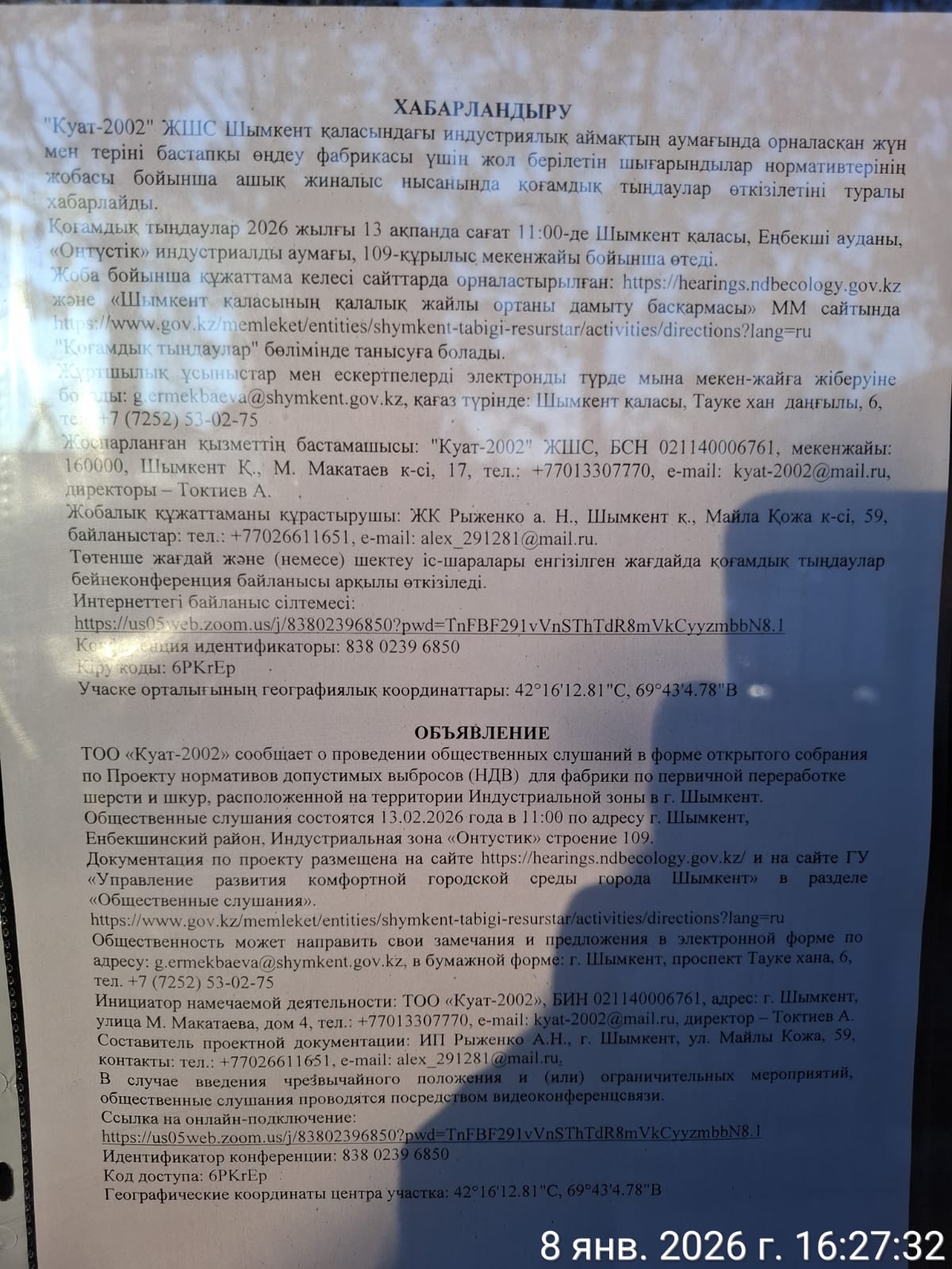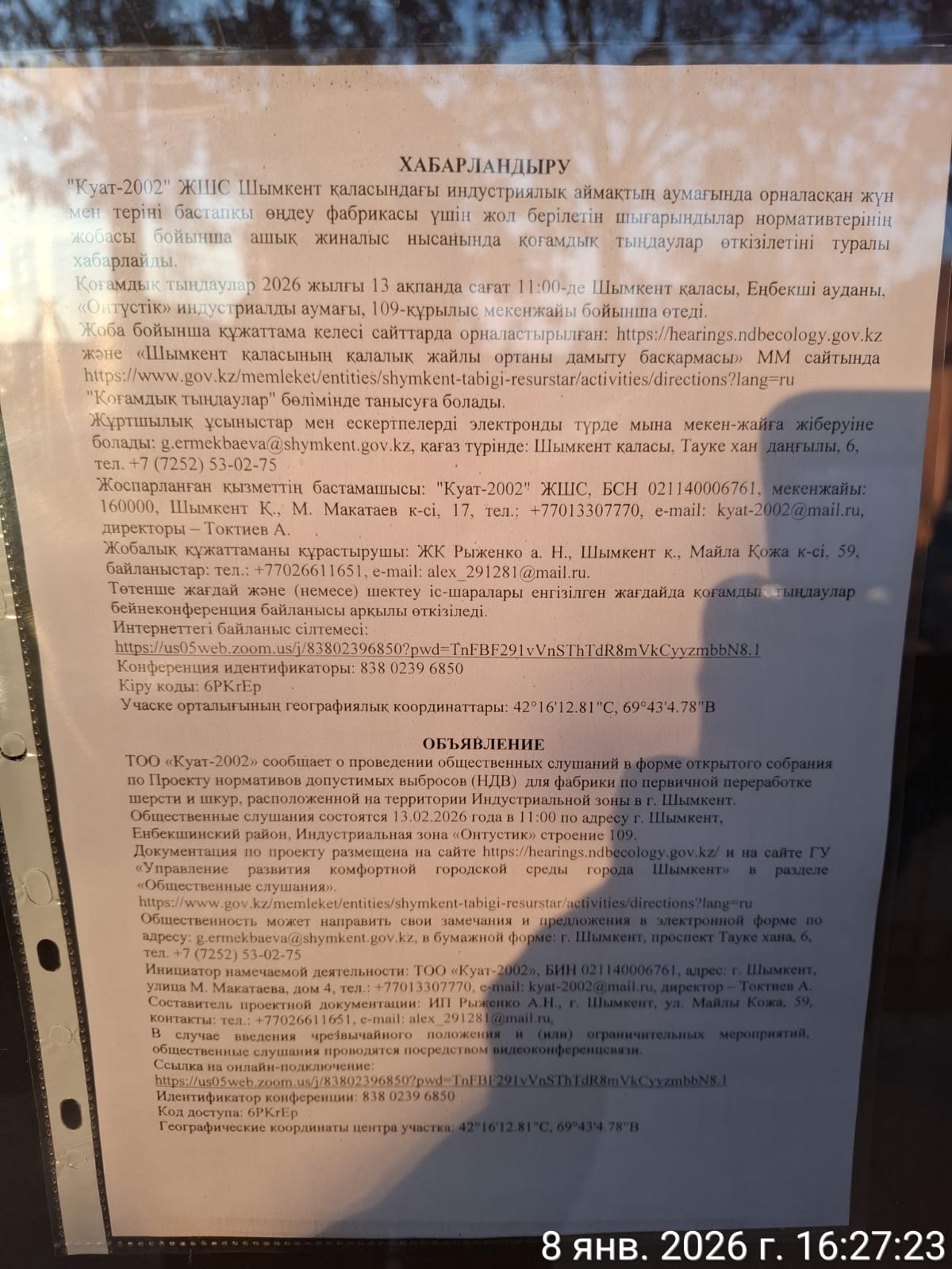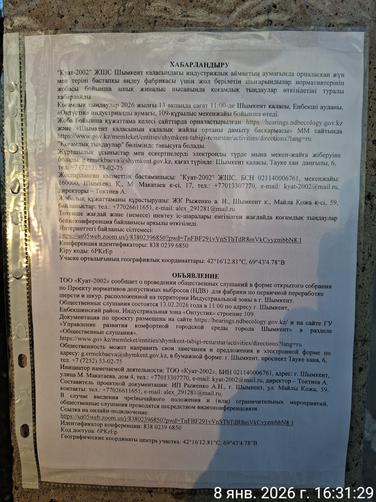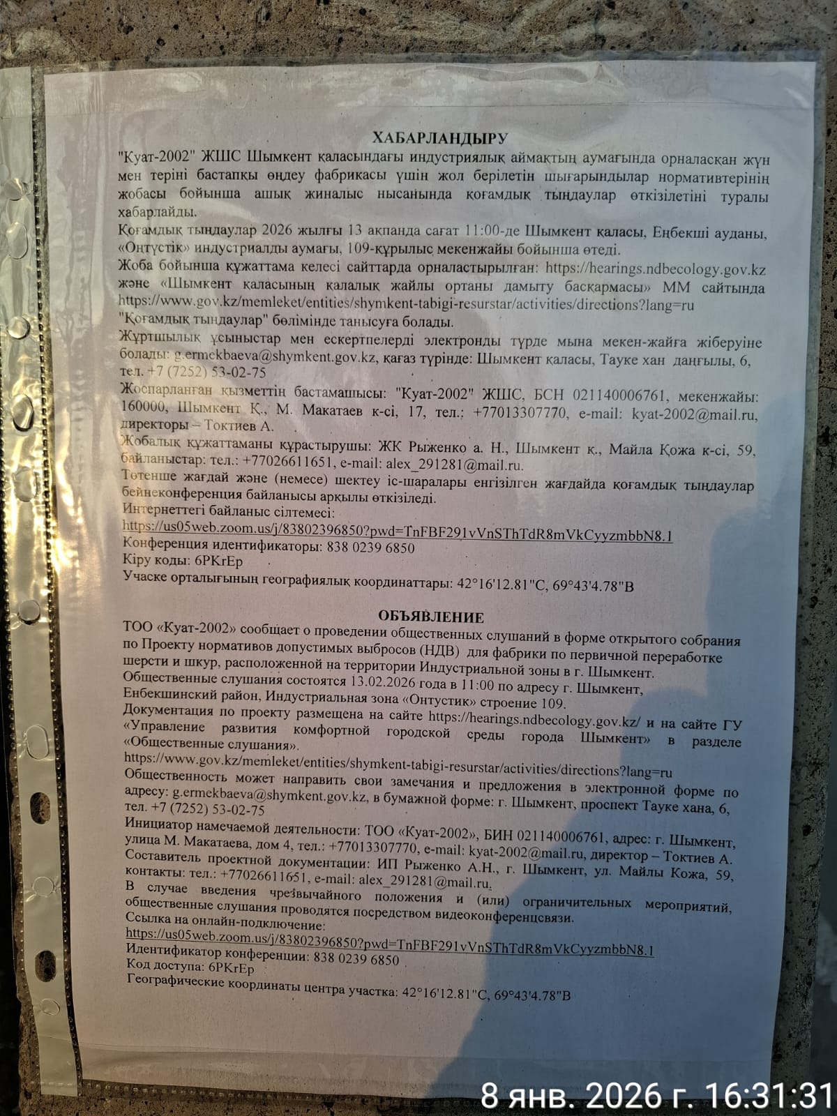 3. Общественные слушания организованны: Управление развития комфортной городской среды г.Шымкент, g.ermekbaeva@shymkent.gov.kz,