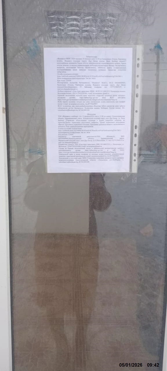 3. Общественные слушания организованны: Управление природных ресурсов и регулирования природопользования Кызылординской области, prd@korda.gov.kz 87242605362, 605369,