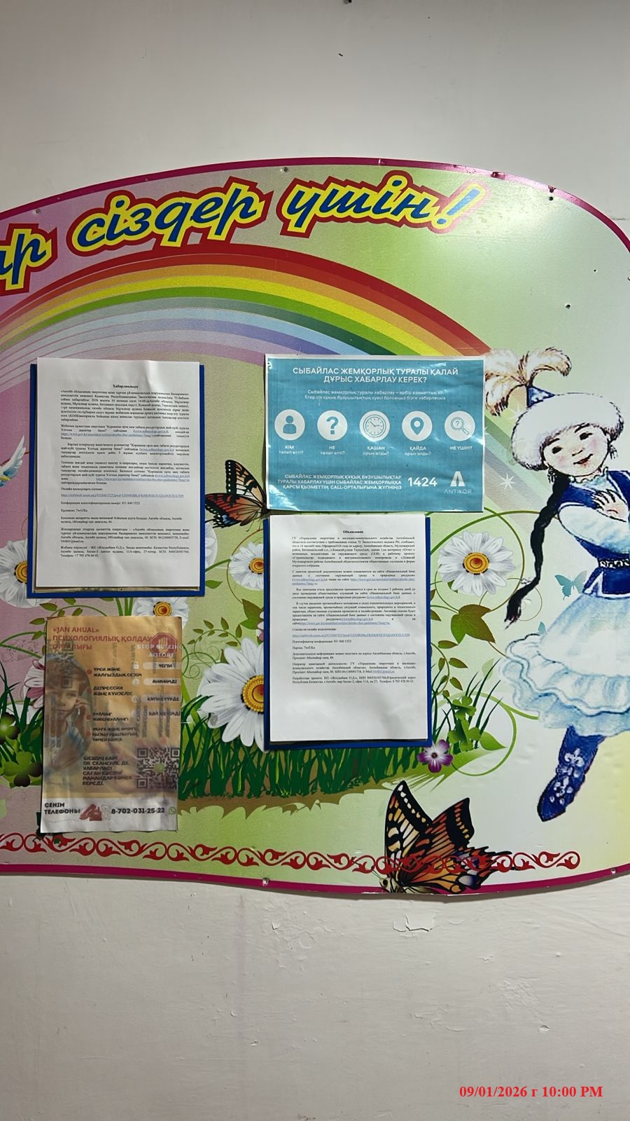 6.3. расположение мест, специально предназначенных для Размещения печатных объявлений (доски объявлений): Актюбинская область, Мугалжарский район, Батпаккольский сельский округ, пос.Жагабулак, ул. Н.Каржаубаева 7