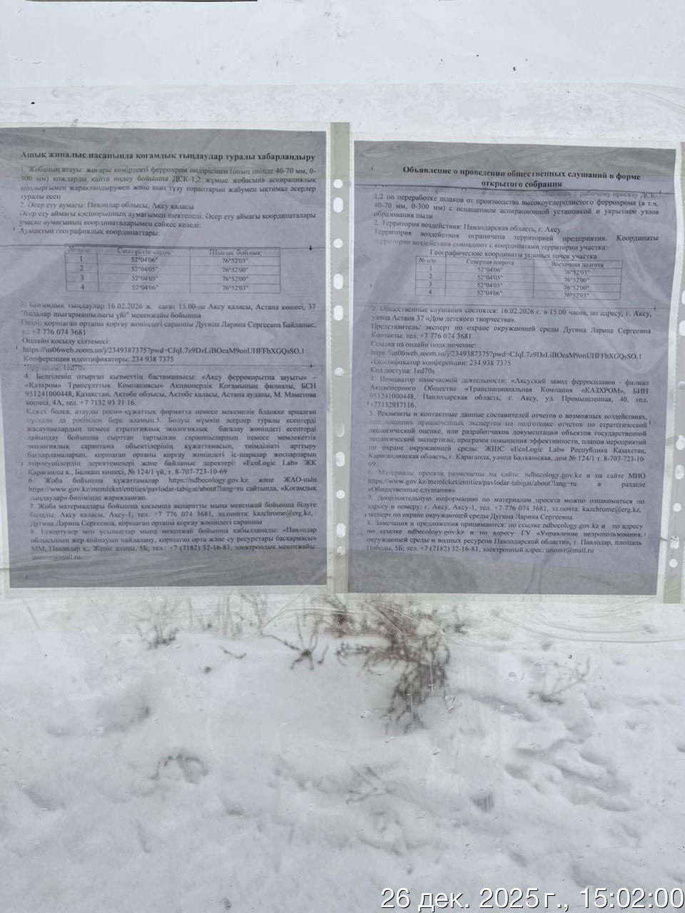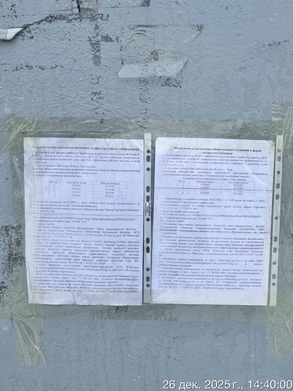 3. Общественные слушания организованны: УПРАВЛЕНИЕ НЕДРОПОЛЬЗОВАНИЯ, ОКРУЖАЮЩЕЙ СРЕДЫ И ВОДНЫХ РЕСУРСОВ ПАВЛОДАРСКОЙ ОБЛАСТИ, unosvr@mail.ru, 87182321681,