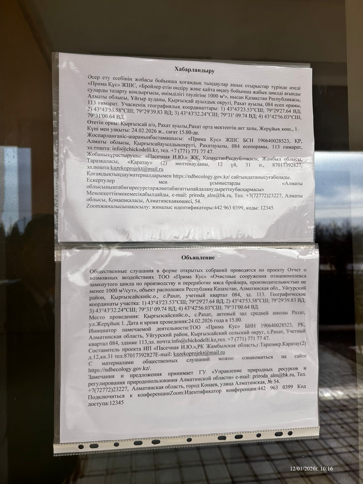 5.4. Дополнительная информация о административно-территориальных единиц: Тема: Отчет о возможных воздействиях ТОО "Прима Кус" "Очистные сооружения птицекомплекса замкнутого цикла по производству и переработке мяса бройлера производительностью не менее 1000м3/год" Время: 24 февр. 2026 03:00 PM Астана, Алматы Подключиться к конференции Zoom https://us06web.zoom.us/j/4429630399?pwd=H67J7vY7idpuqnIUiz4M0NSprGUibR.1&omn=85872665722 Идентификатор конференции: 442 963 0399 Код доступа: 12345 Инструкции по подключению https://us06web.zoom.us/meetings/85872665722/invitations?signature=ueAjsQ1PgtKlKrAQeBRu3B20OdozkYjERPLtFyD0HRo
