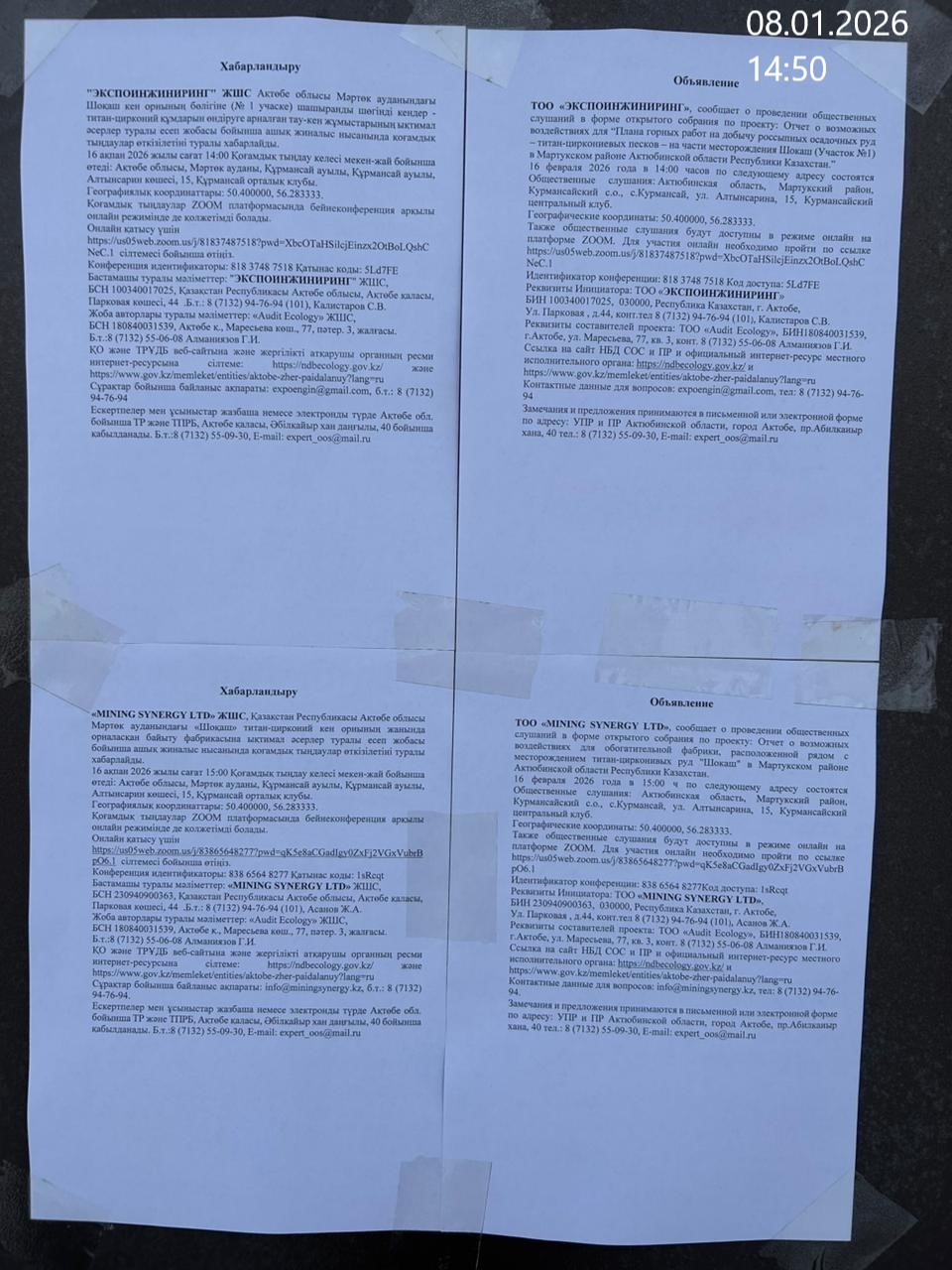 3. Общественные слушания организованны: Управление природных ресурсов и регулирования природопользования Актюбинской области, expert_oos@mail.ru,