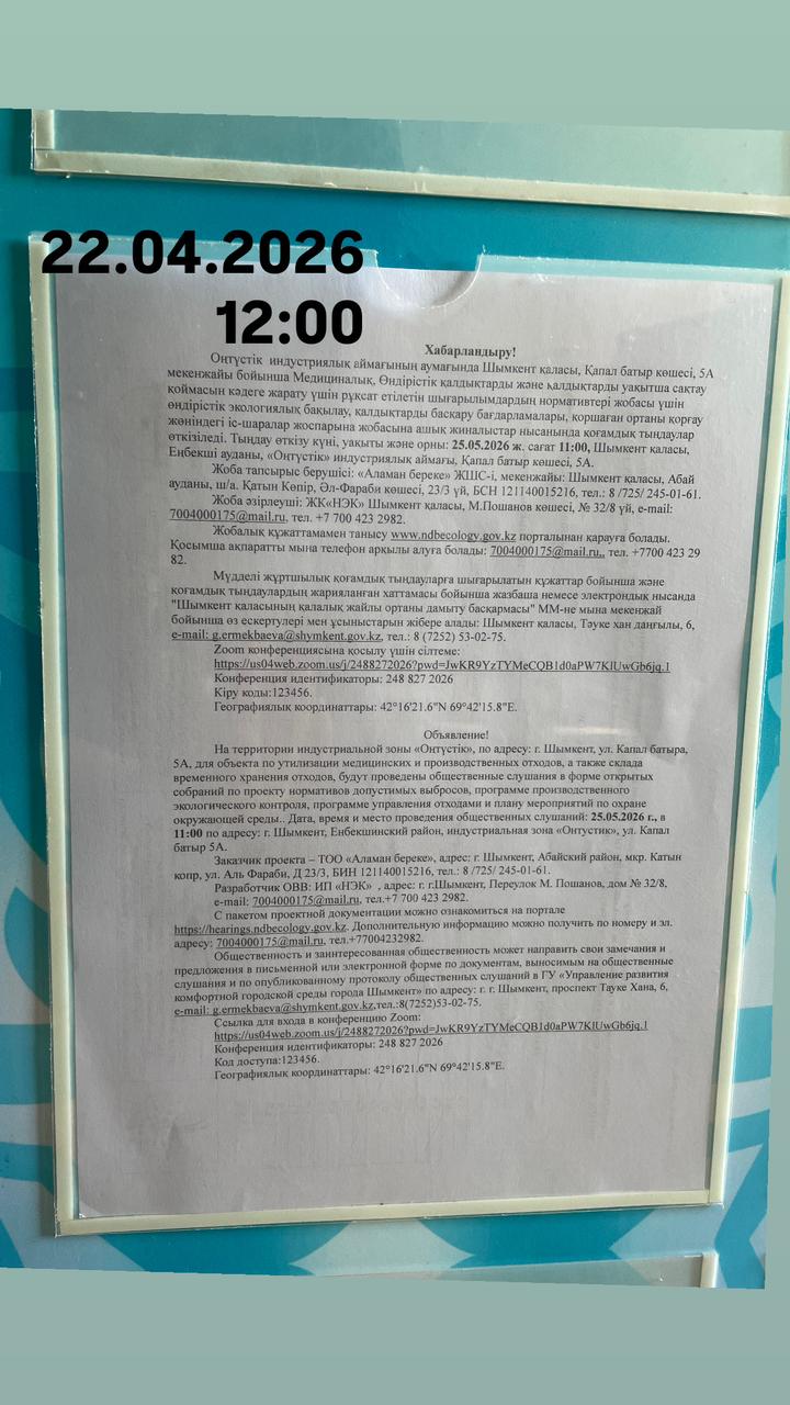 3. Общественные слушания организованны: Управление развития комфортной городской среды г.Шымкент, g.ermekbaeva@shymkent.gov.kz,