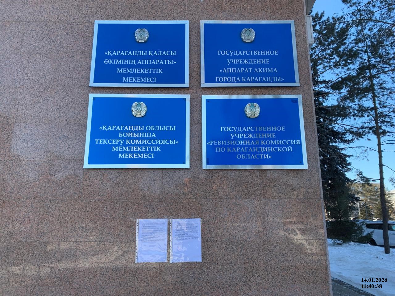 6.3. расположение мест, специально предназначенных для Размещения печатных объявлений (доски объявлений): г. Караганда, Центр приема граждан Карагандинской области