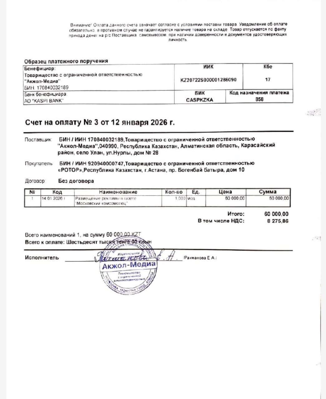 6.1. Наименование газеты, где будет размещено объявление: Газета "МК в Казахстане"