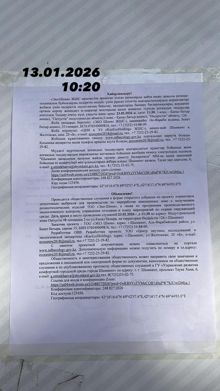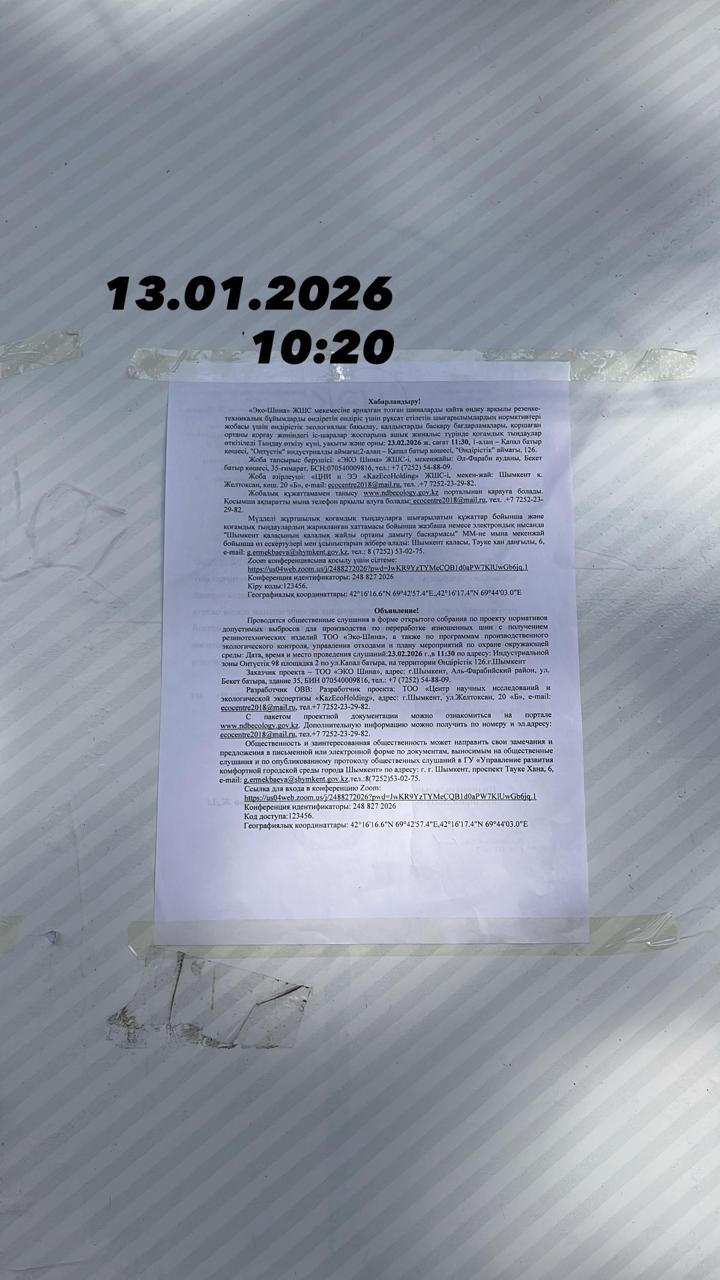 3. Общественные слушания организованны: Управление развития комфортной городской среды г.Шымкент, g.ermekbaeva@shymkent.gov.kz,