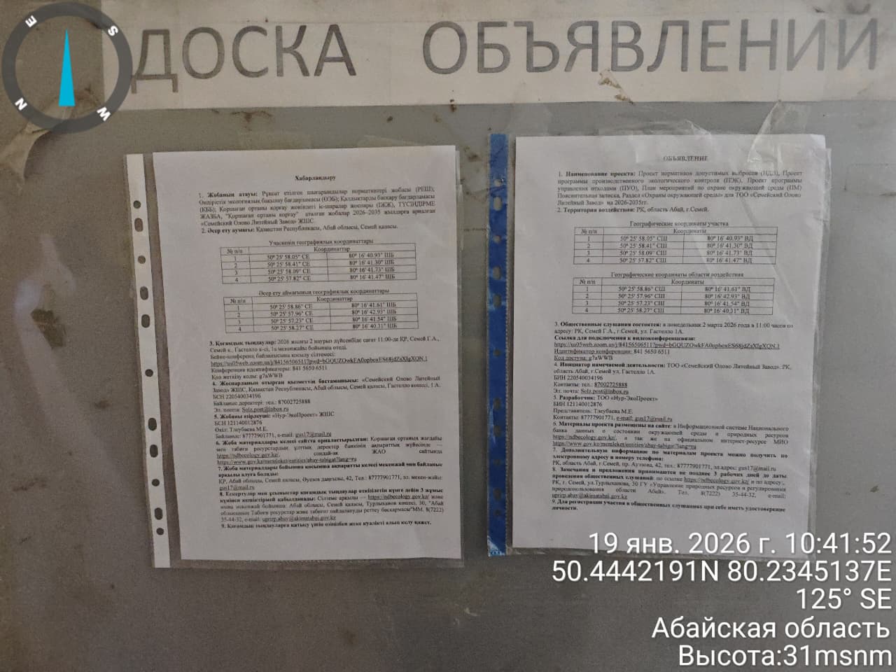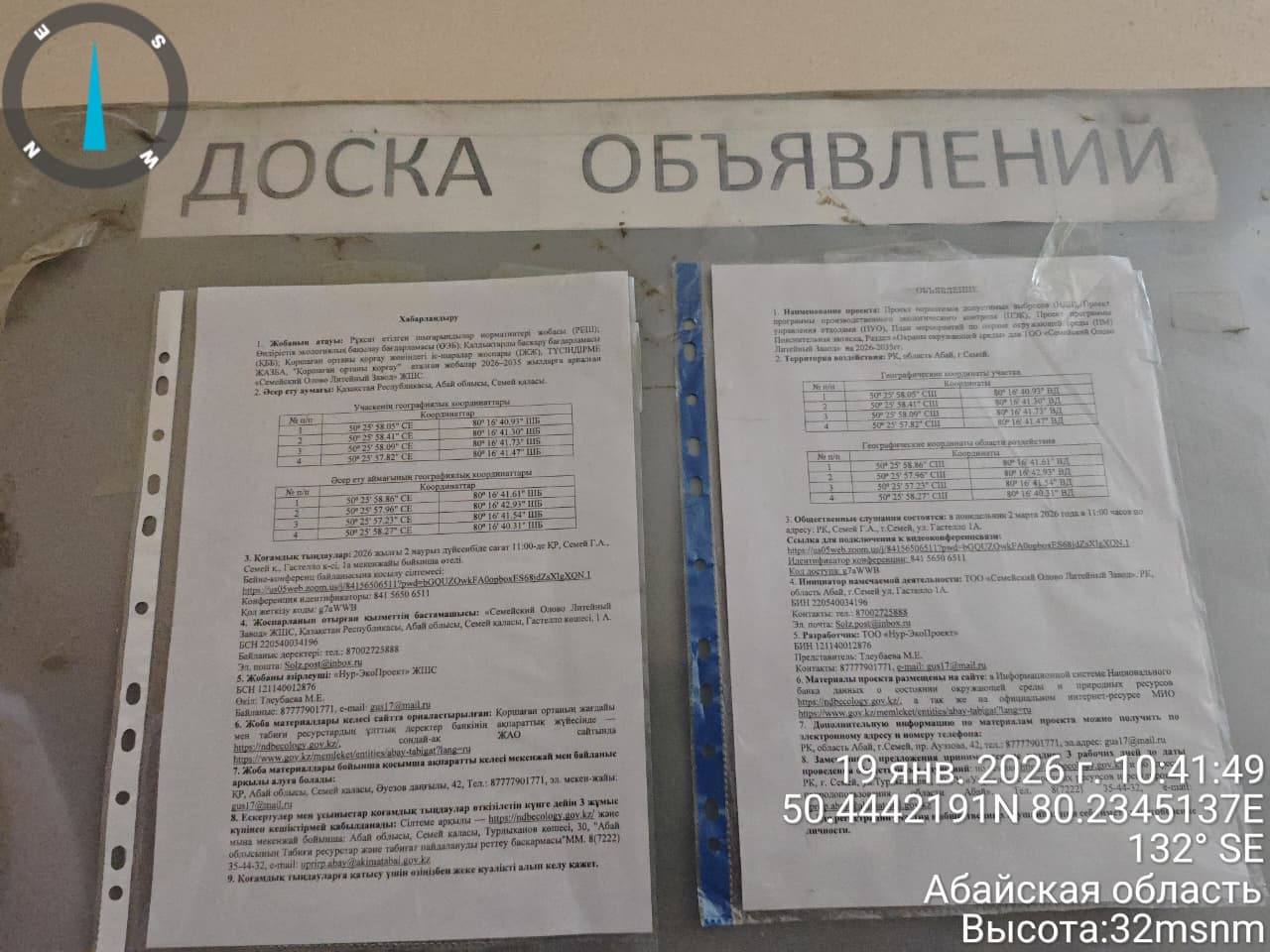 3. Общественные слушания организованны: Главный специалист УПР и ПР область Абай, prirodnyye_resursy_obl.abay@mail.ru,