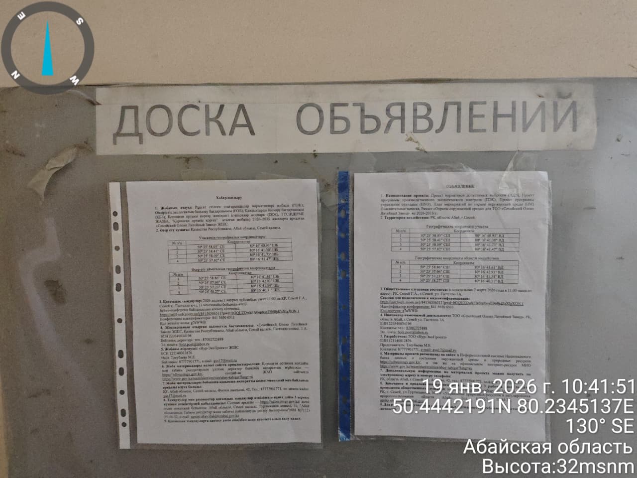 По проекту: Проект нормативов допустимых выбросов (НДВ), Проект программы производственного экологического контроля (ПЭК), Проект программы управления отходами (ПУО), План мероприятий по охране окружающей среды (ПМ), Пояснительная записка, Раздел «Охрана окружающей среды» для ТОО «Семейский Олово Литейный Завод» на 2026-2035 гг.