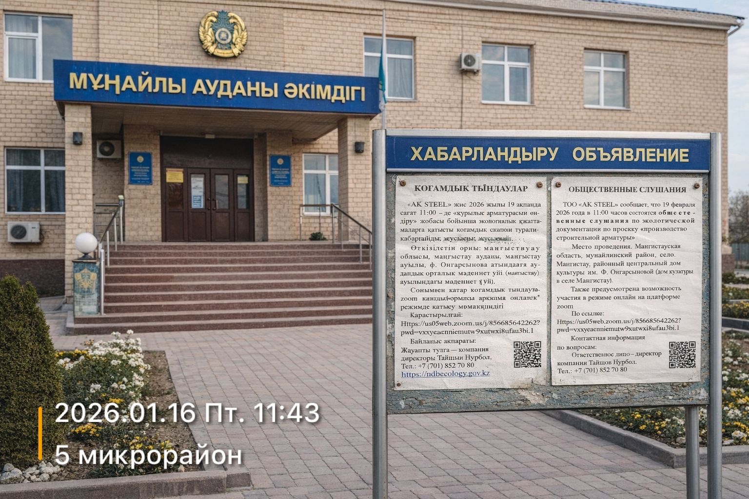3. Общественные слушания организованны: Управление природных ресурсов и регулирования природопользования Мангистауской области, s.bazarbay@mangystau.gov.kz,