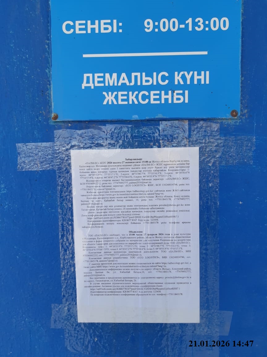 2. Согласно выданного РГУ «Комитет экологического регулирования и контроля Министерства экологии и природных ресурсов Республики Казахстан» Министерства экологии и природных ресурсов Республики Казахстан Мотивированного отказа №KZ26VWF00497300 от 16.01.2026 года разработан проектов нормативов эмиссий для объекта I категории.