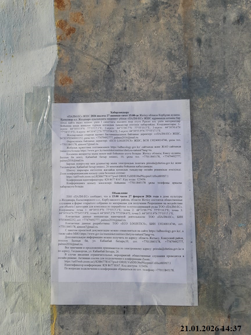 Вопрос:Құралай, представитель департамента экологии по области Жетісу.