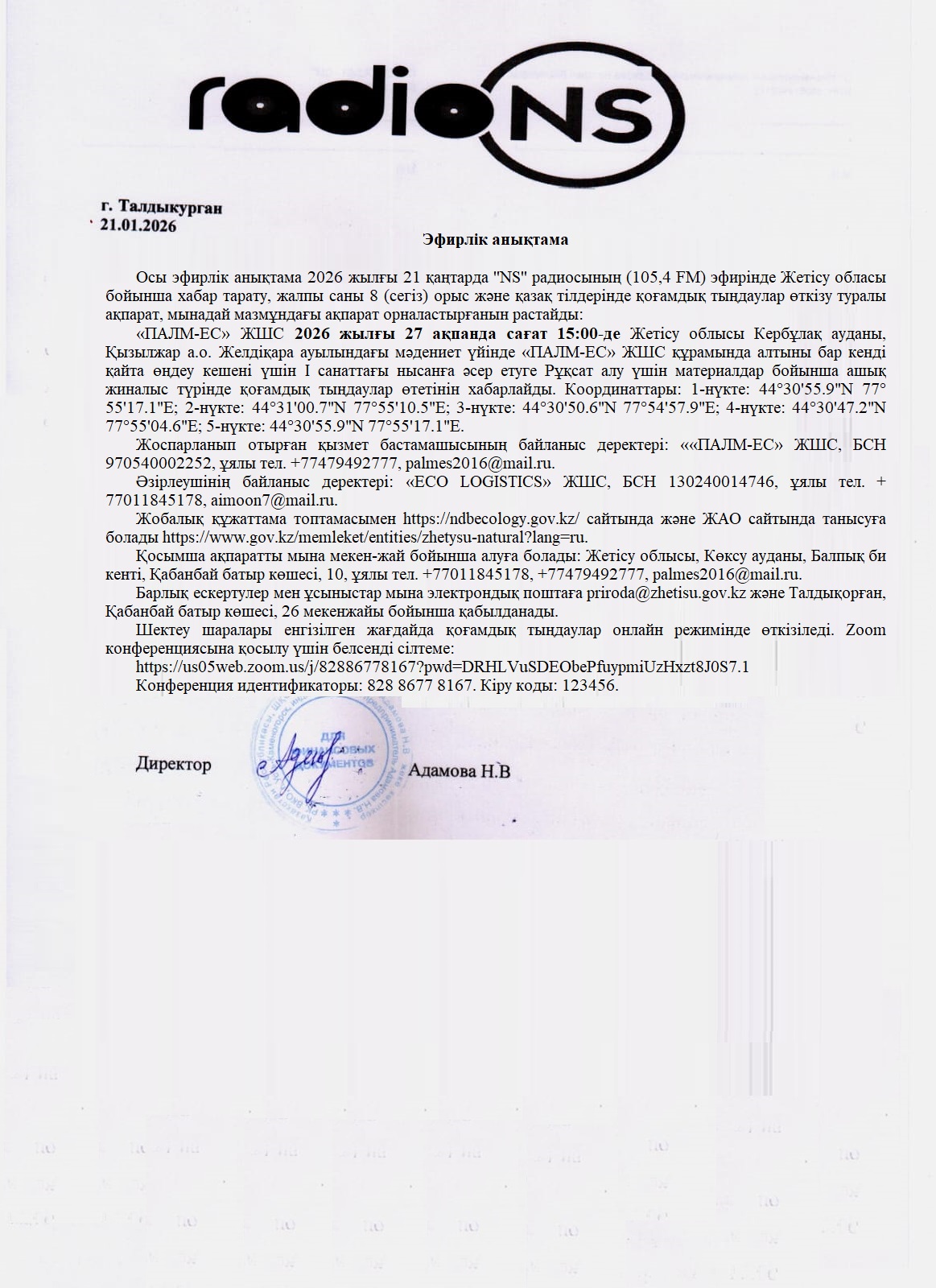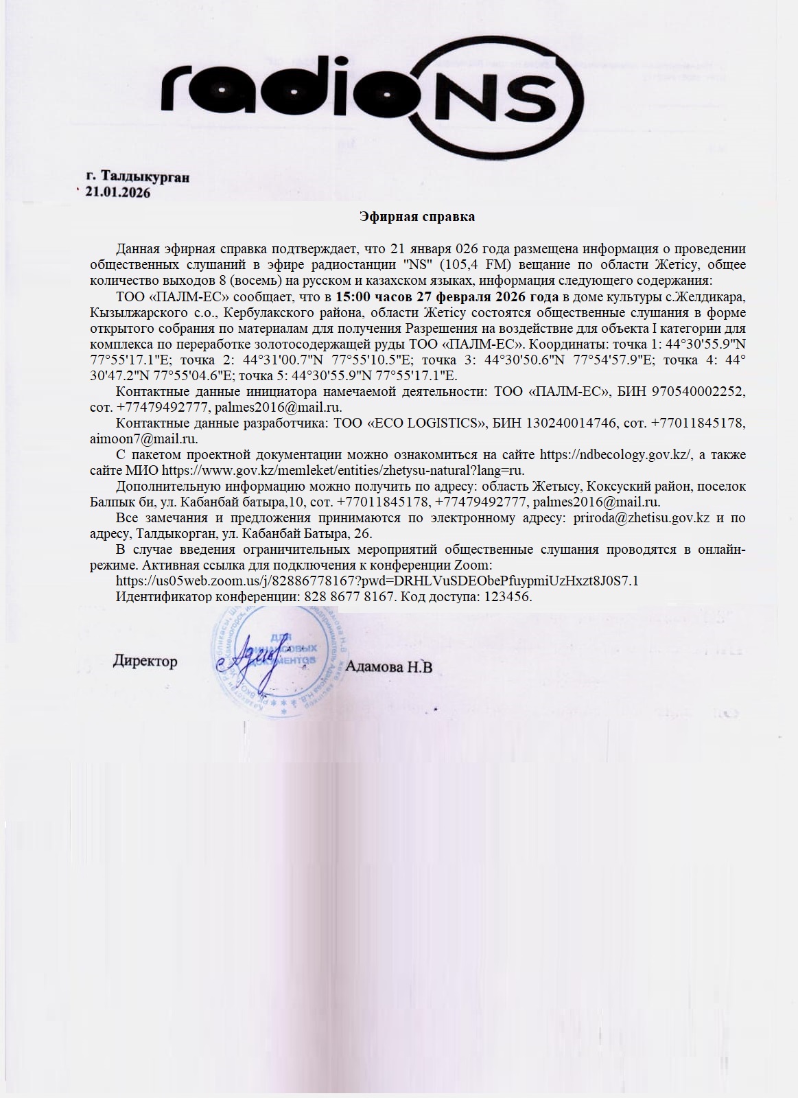 12. Имеется справка подтверждение о том что объявление было размещено на радиостанции «NS». Скан справки также можем выслать при предоставлении адреса электронной почты.