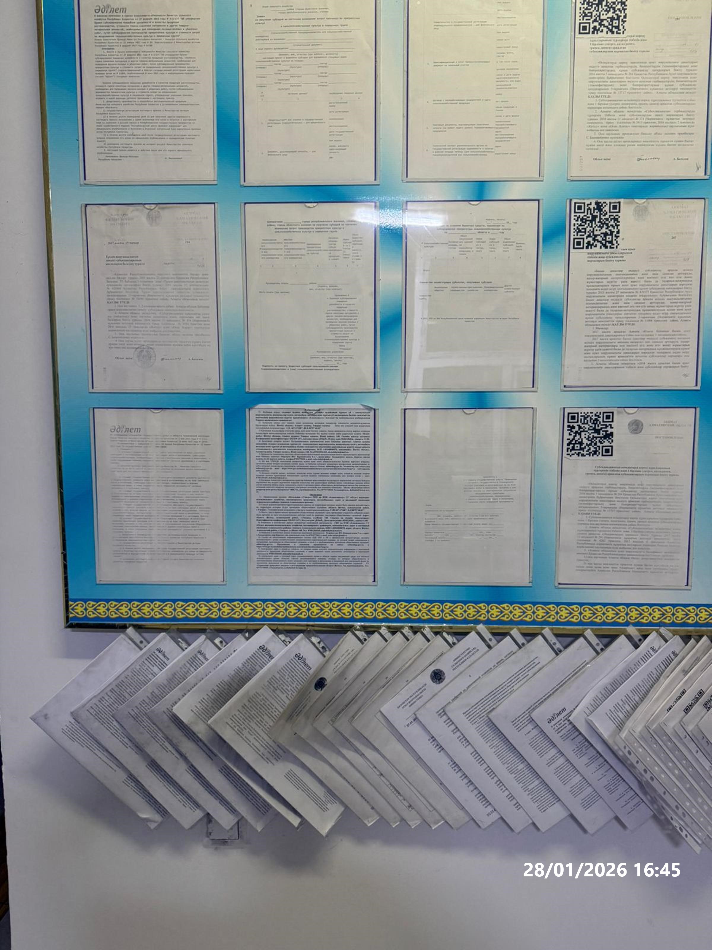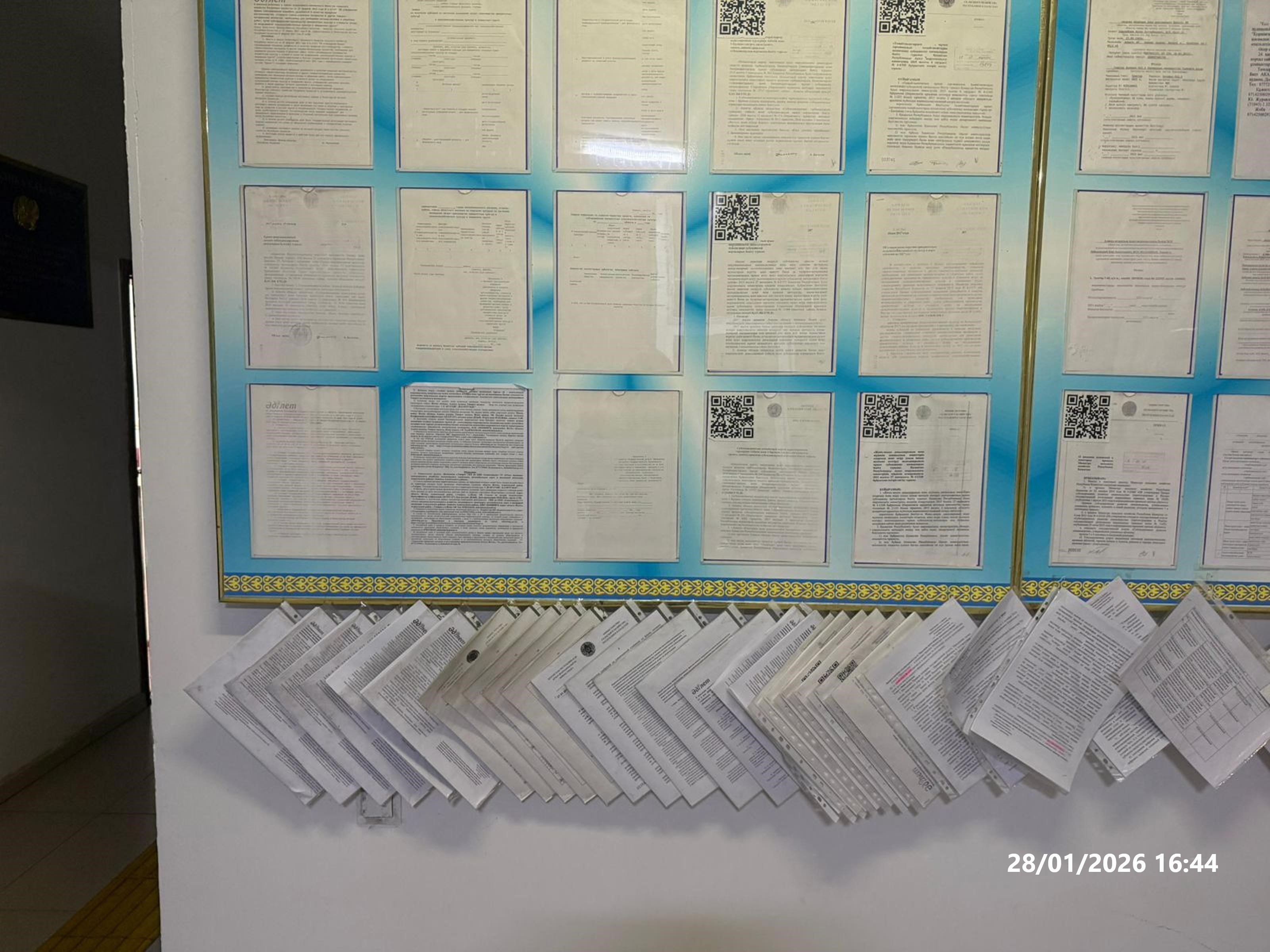 6.3. расположение мест, специально предназначенных для Размещения печатных объявлений (доски объявлений): Доска объявлений Акимата