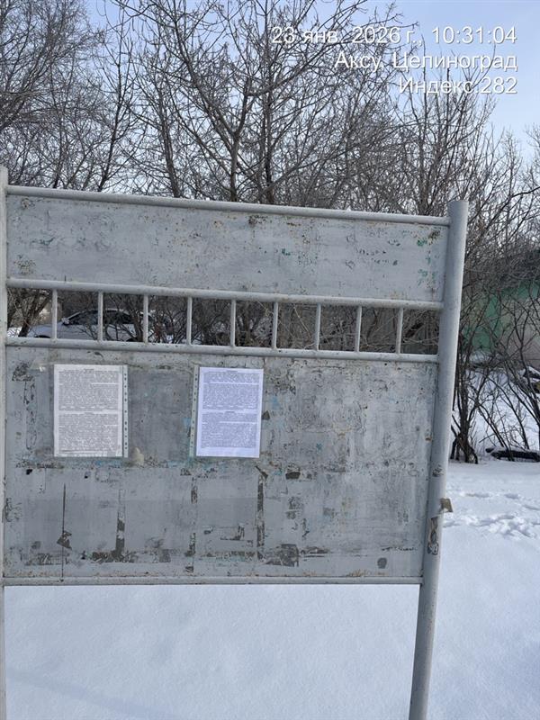 6.3. расположение мест, специально предназначенных для Размещения печатных объявлений (доски объявлений): Акмолинская область, Степногорск г.а., Аксуская п.а., п. Аксу, ул. Набиева 26, здание Акимата
