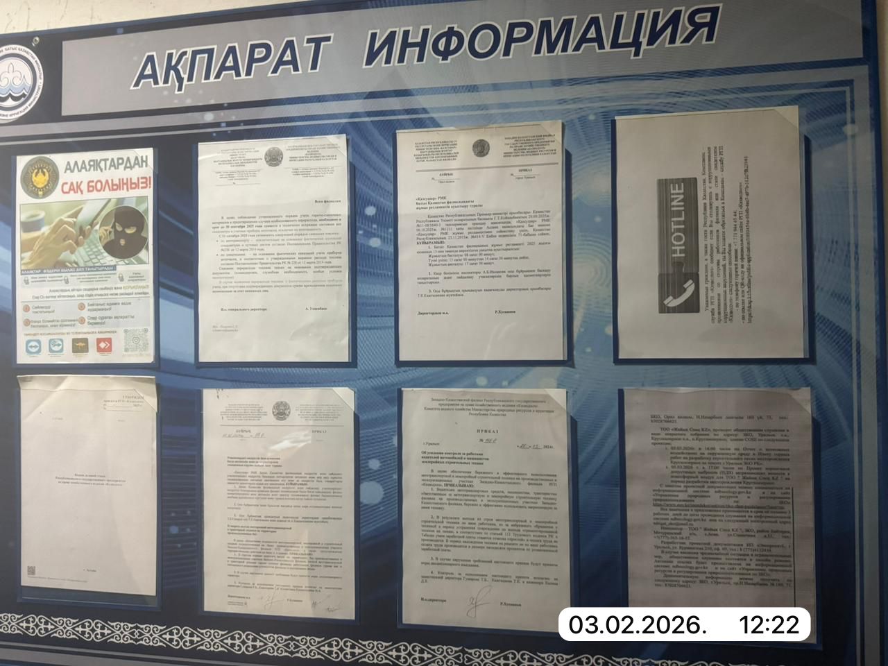 6.3. расположение мест, специально предназначенных для Размещения печатных объявлений (доски объявлений): Западно-Казахстанская область, Уральск Г.А., Круглоозерновская п.а., п.Круглоозерное, здание Аппарата акима п.Круглоозерное