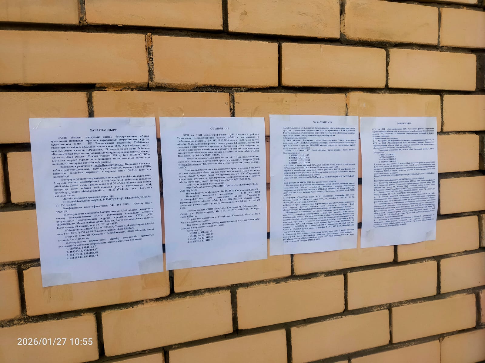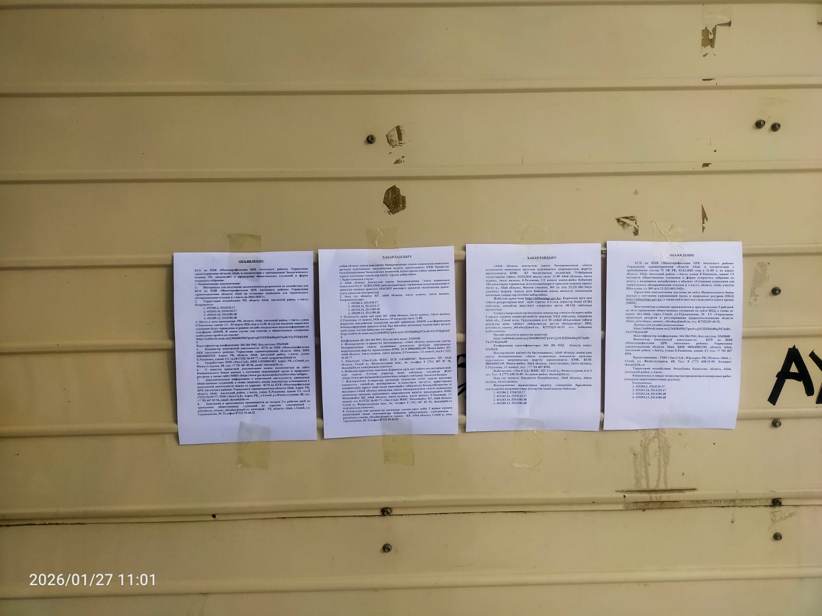 6. Объявление о проведении общественных слушаний на казахском и русском языках будет распространено следующими способами: