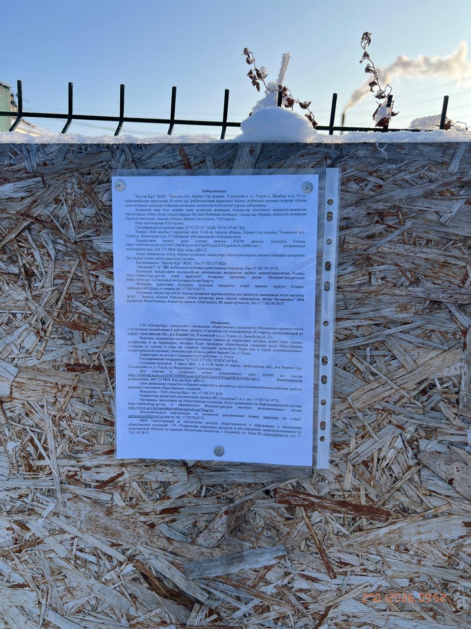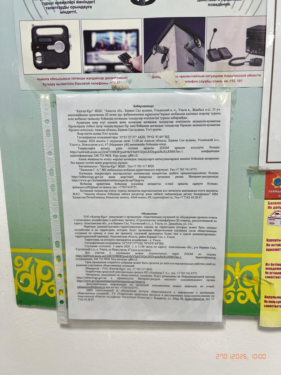 3. Общественные слушания организованны: Управление природных ресурсов и регулирования природопользования Акмолинской области, expeco@mail.ru,