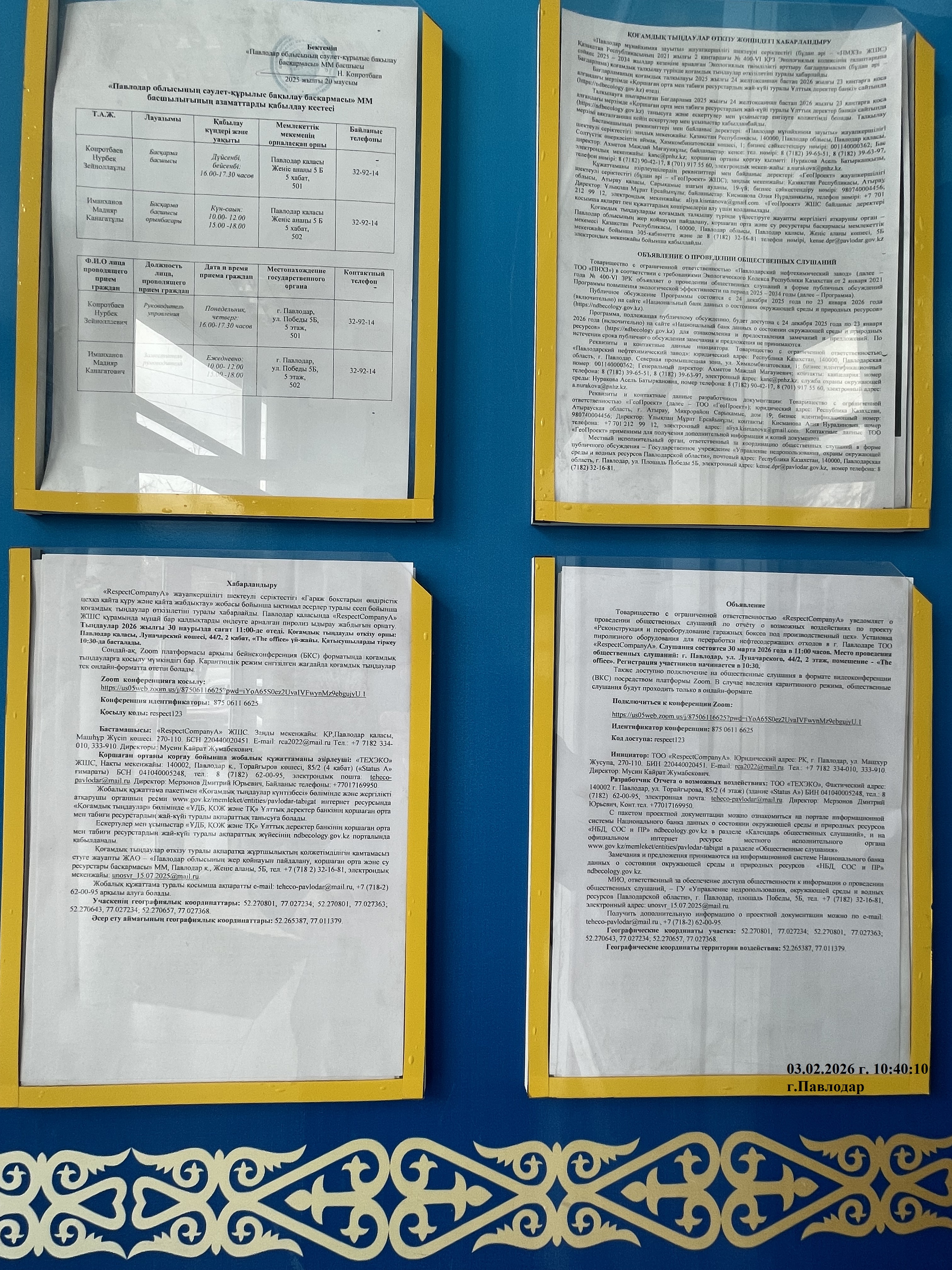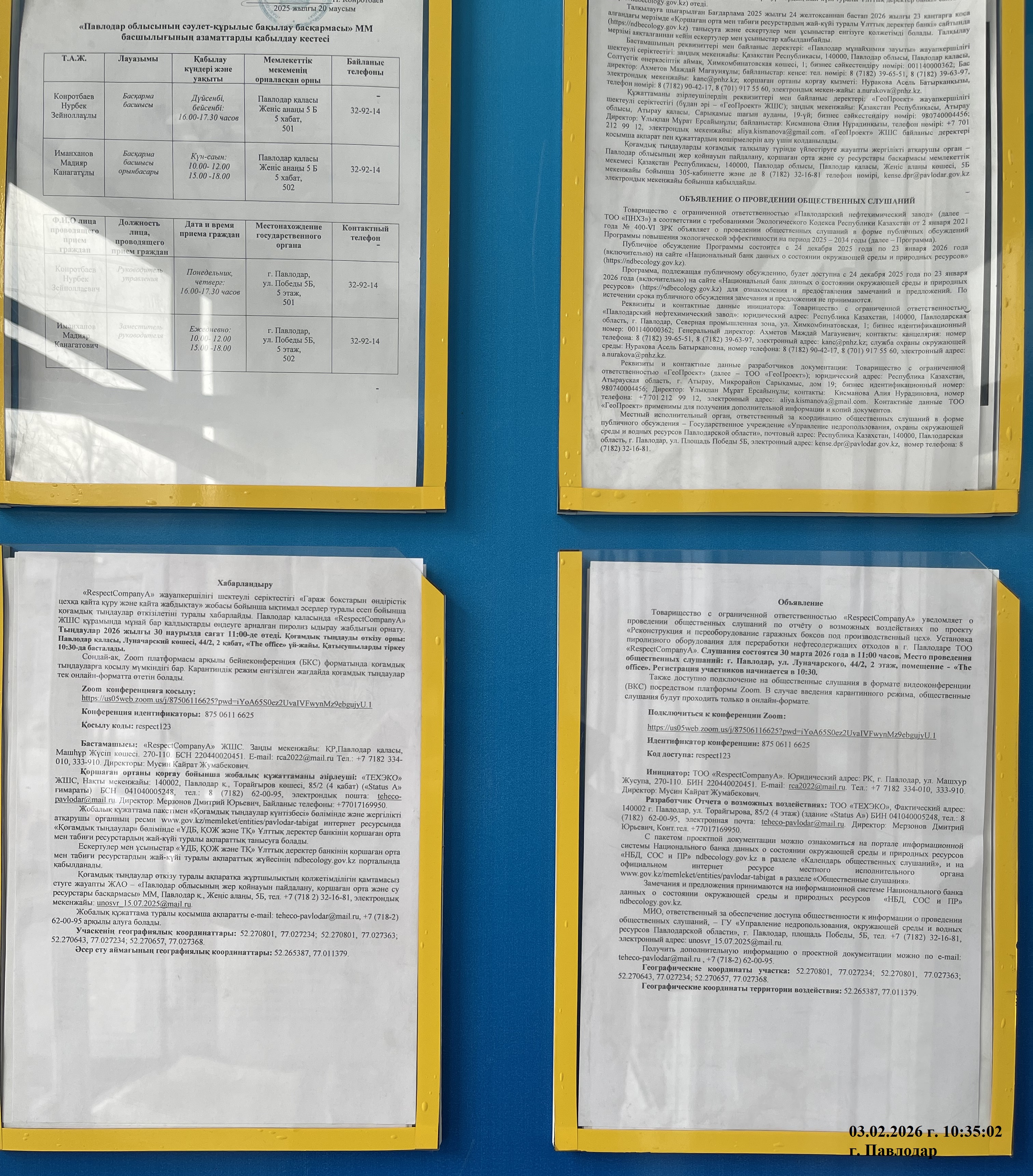 1.4. Описание для подключения к онлайн трансляции при прохождении общественного слушания: Тема: Отчет о воздействии ТОО RespectCompanyA Время: 30 мар. 2026 11:00 AM Астана, Алматы Подключиться к конференции Zoom https://us05web.zoom.us/j/87506116625?pwd=iYoA65S0ez2UvaIVFwynMz9ebgujyU.1 Идентификатор конференции: 875 0611 6625 Код доступа: respect123 Инструкции по подключению https://us05web.zoom.us/meetings/87506116625/invitations?signature=OEe6-ZcMHfWk5FKn5lp2bydeptvHPE3wqU28xR27ydM