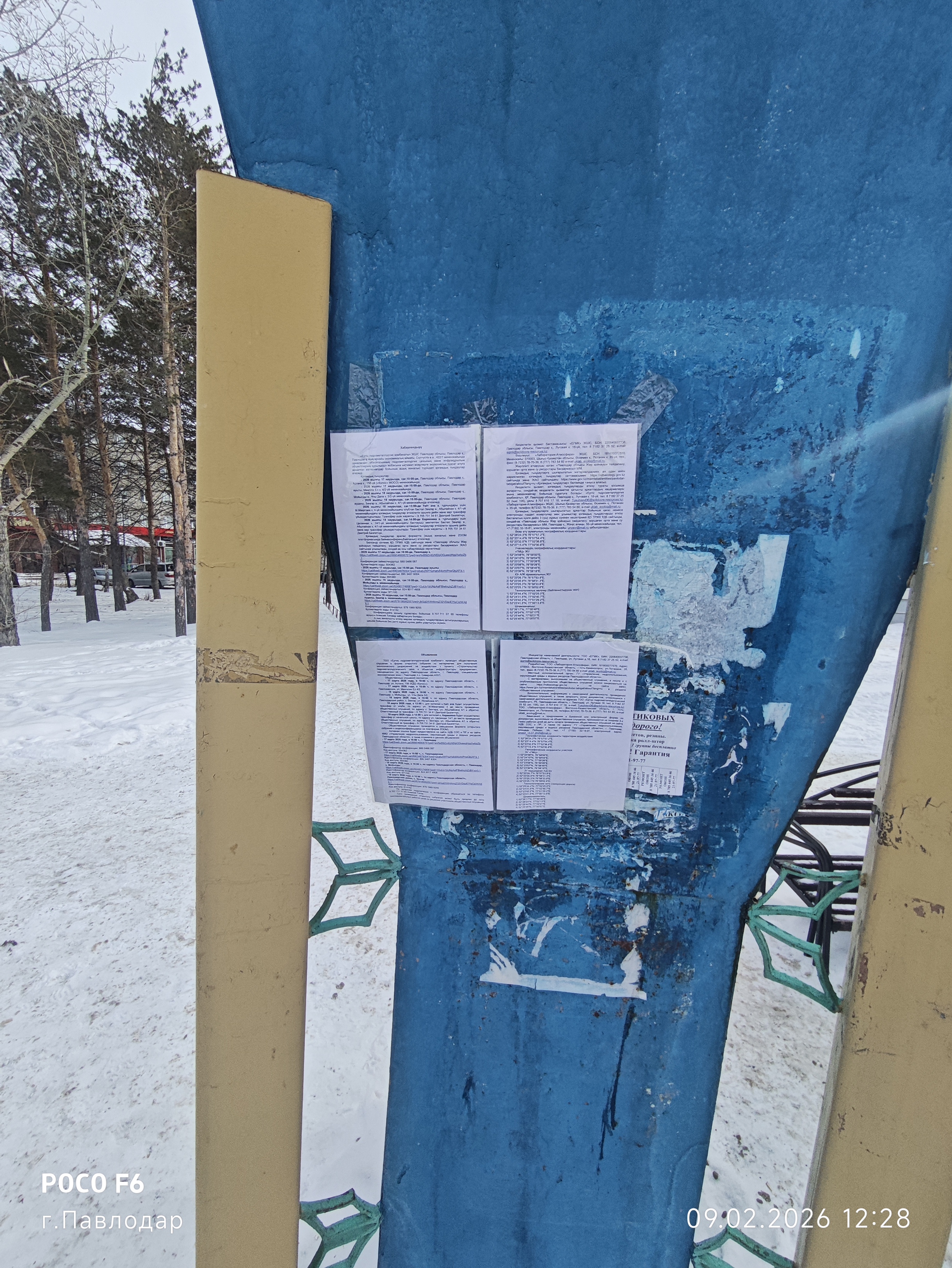 6.3. расположение мест, специально предназначенных для Размещения печатных объявлений (доски объявлений): Вблизи расположенных к объекту воздействия