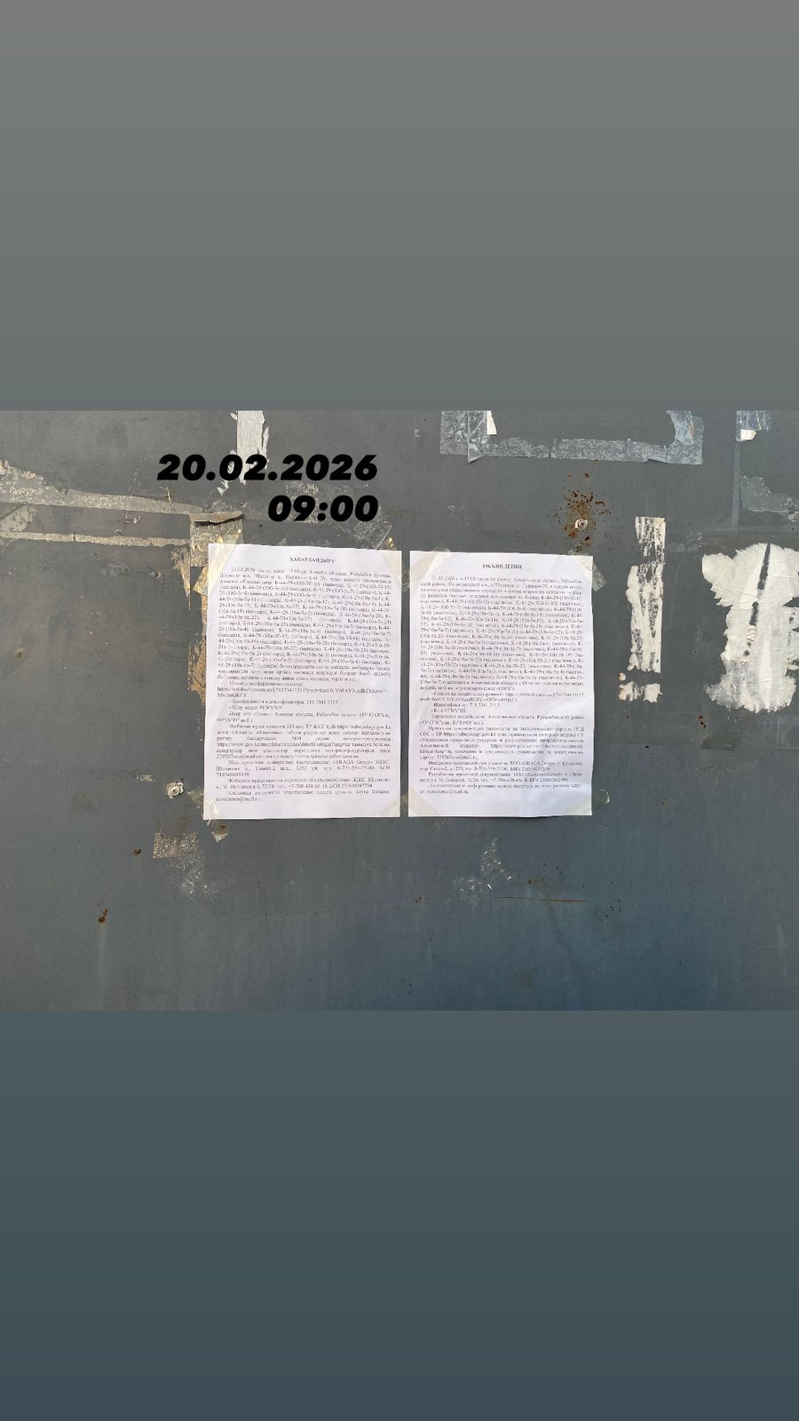 6. Объявление о проведении общественных слушаний на казахском и русском языках будет распространено следующими способами:
