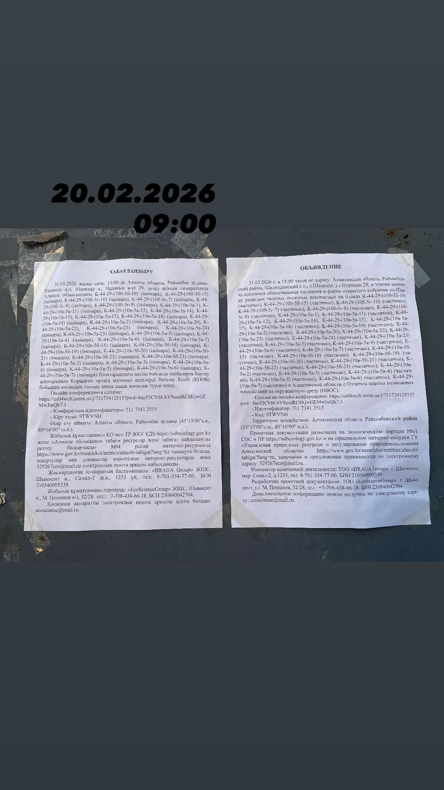3. Общественные слушания организованны: Управление природных ресурсов и регулирования природопользования Алматинской области, 329267eco@mail.ru,