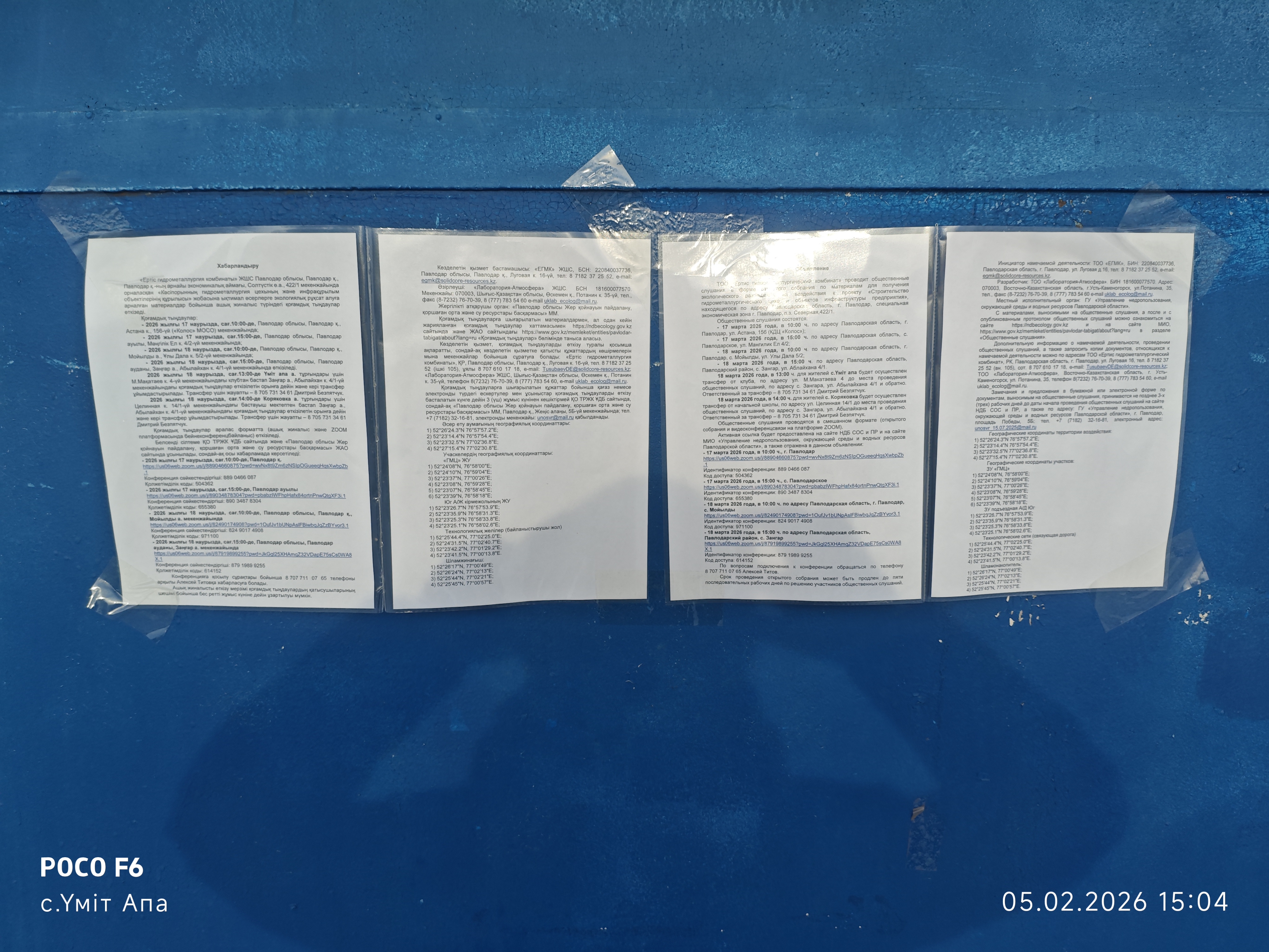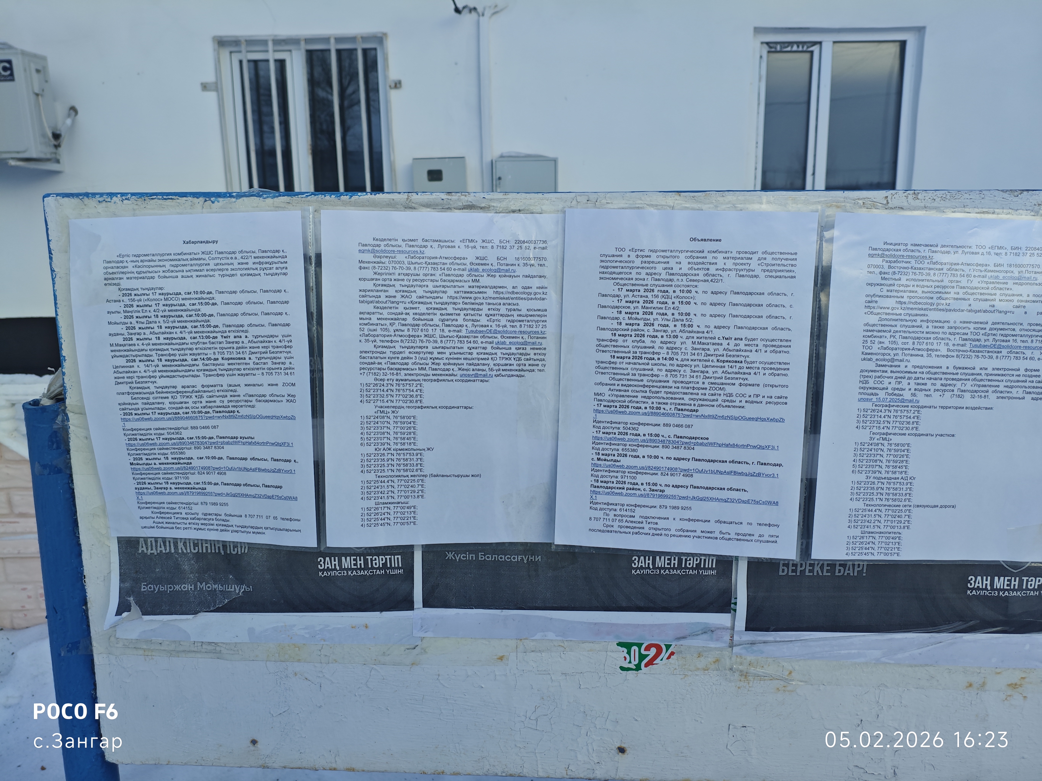 6. Объявление о проведении общественных слушаний на казахском и русском языках будет распространено следующими способами: