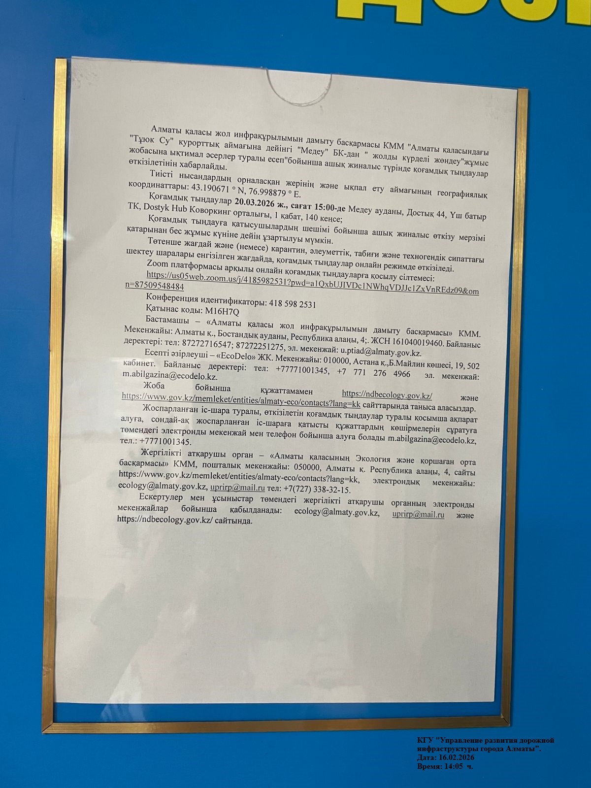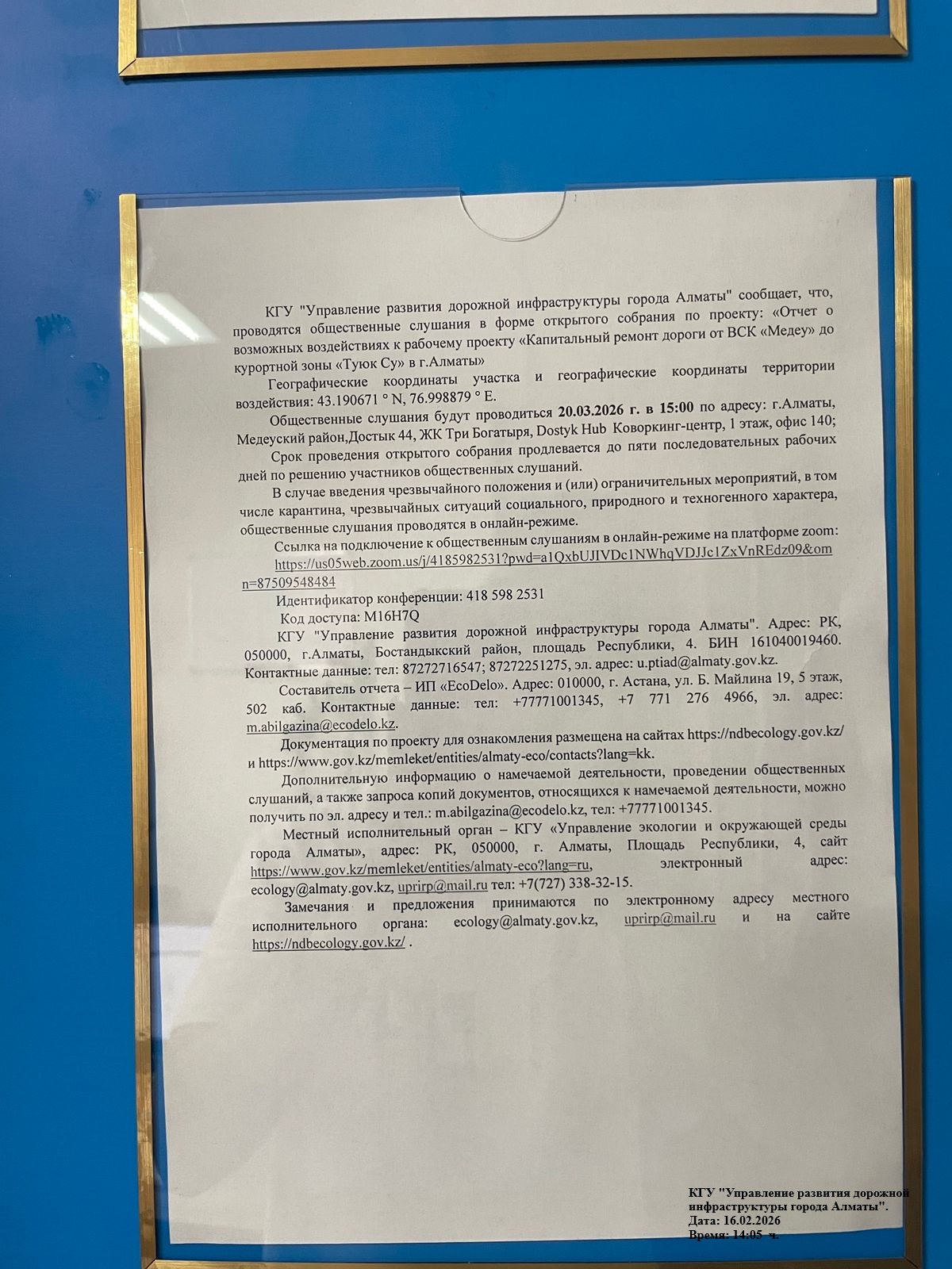 1.4. Описание для подключения к онлайн трансляции при прохождении общественного слушания: Идентификатор конференции 418 598 2531 Код доступа M16H7Q