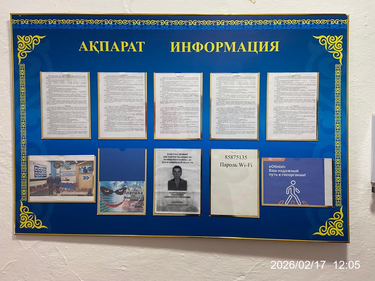6.3. расположение мест, специально предназначенных для Размещения печатных объявлений (доски объявлений): 1. Доска объявлений ГУ "Аппарат акима села Талдысай Нуринского района"; 2. Доска объявлений в общественном месте.