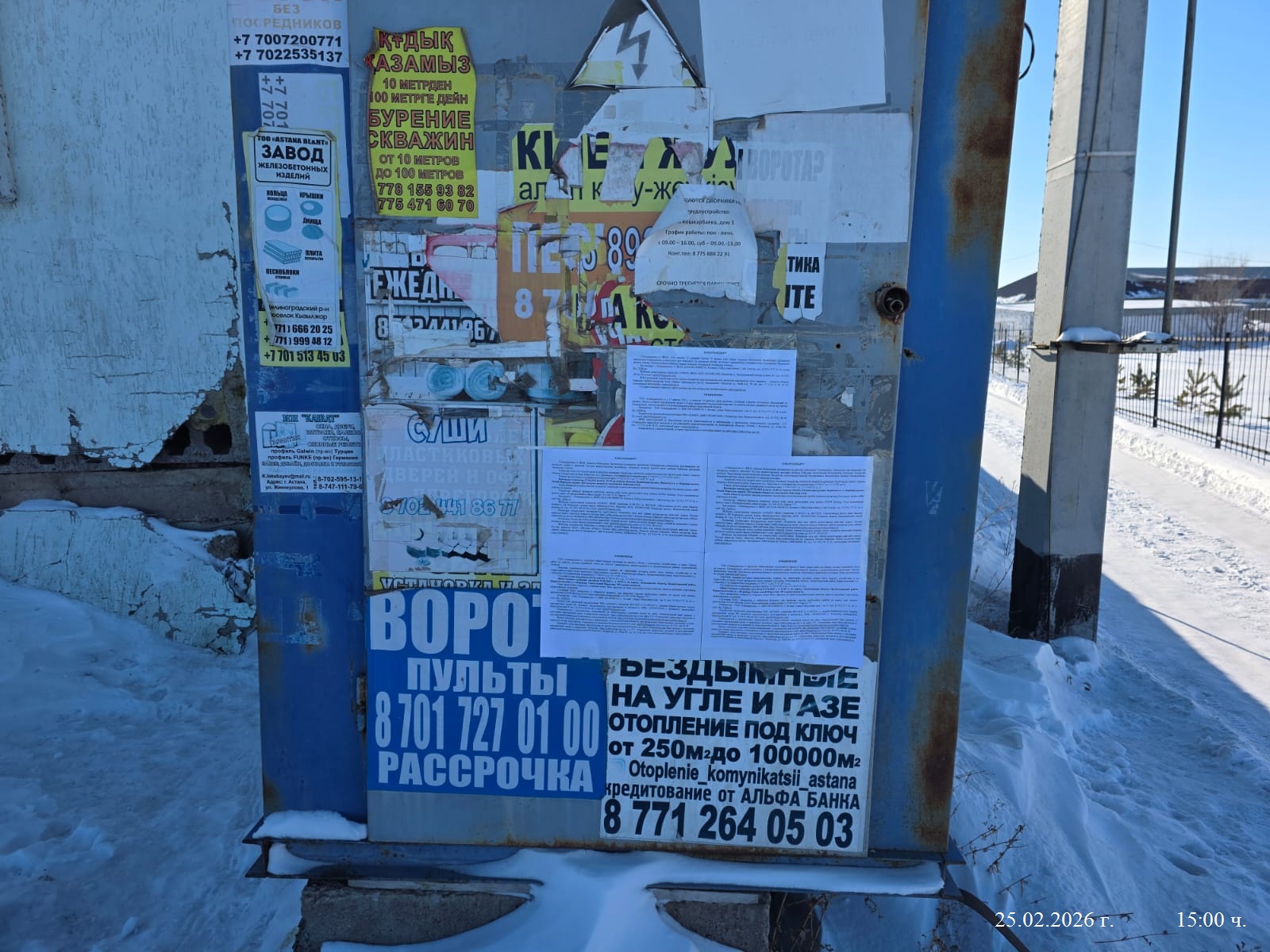 6.3. расположение мест, специально предназначенных для Размещения печатных объявлений (доски объявлений): Доска объявления в с.Каражар