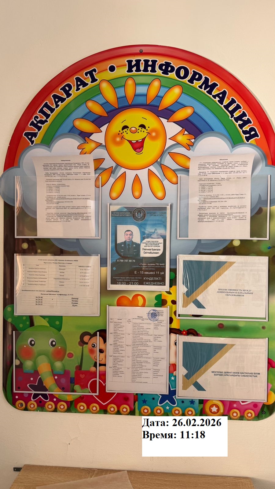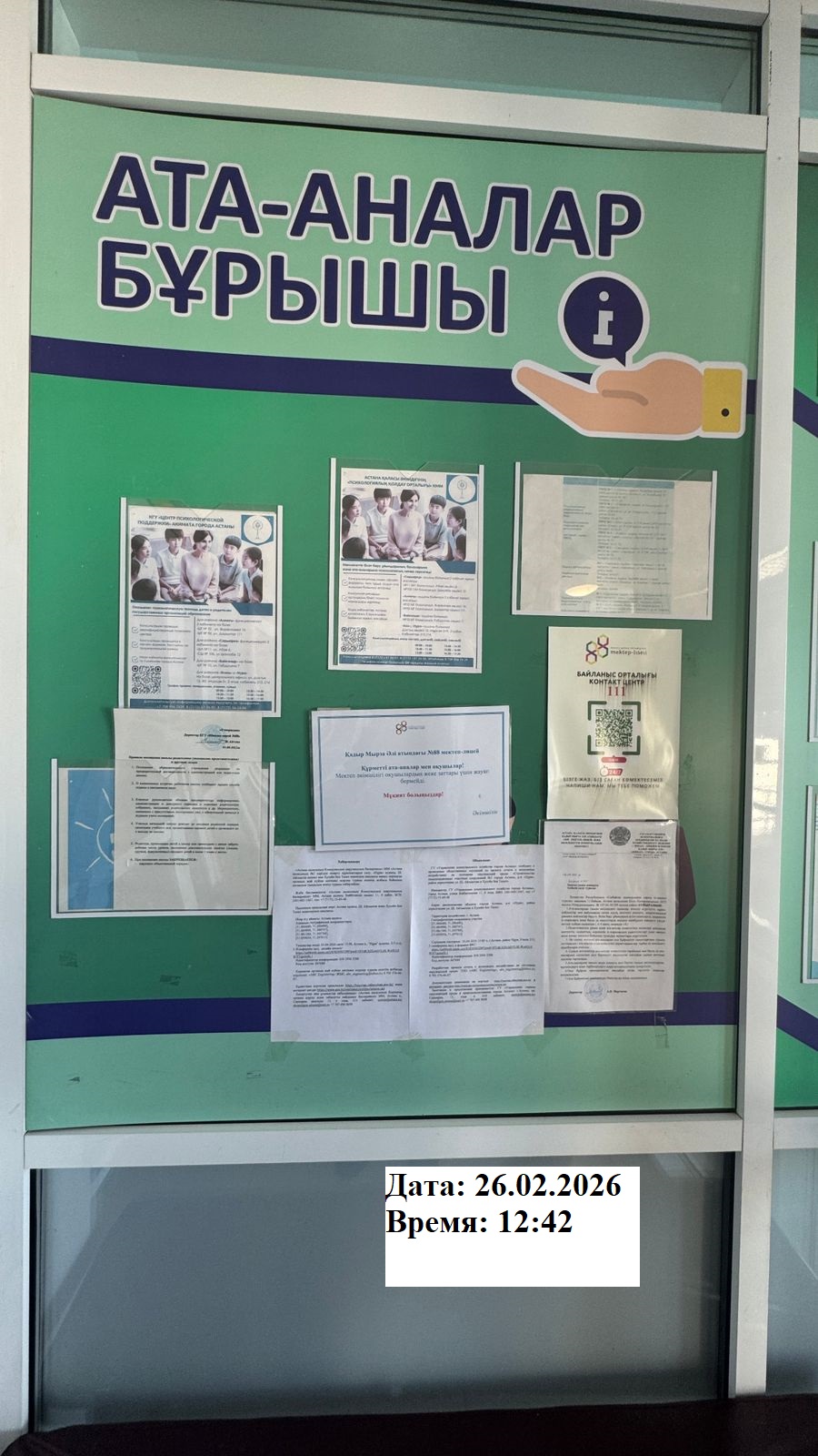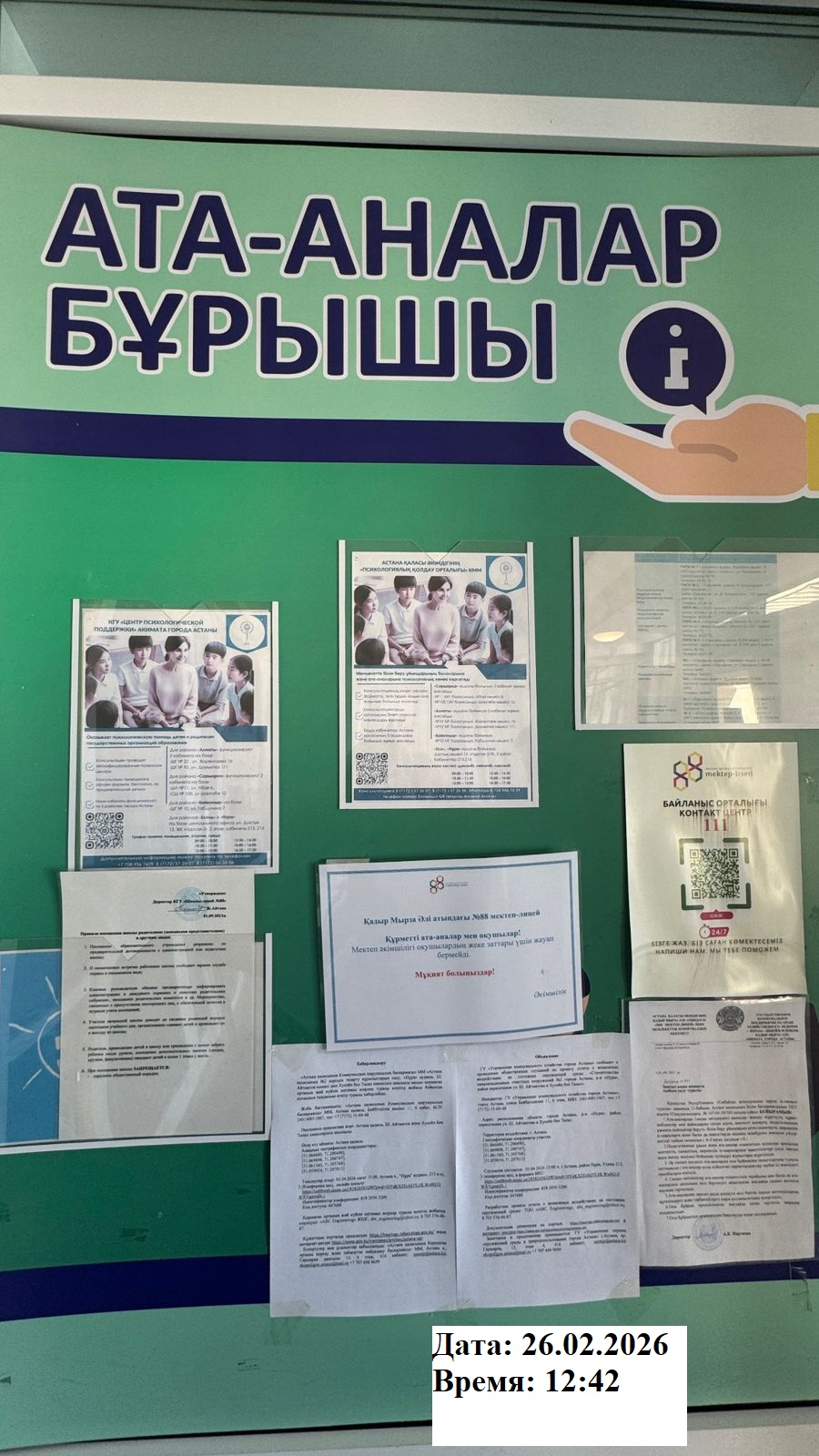 6.3. расположение мест, специально предназначенных для Размещения печатных объявлений (доски объявлений): доска объявлений акимата, школы, садик г.Астана