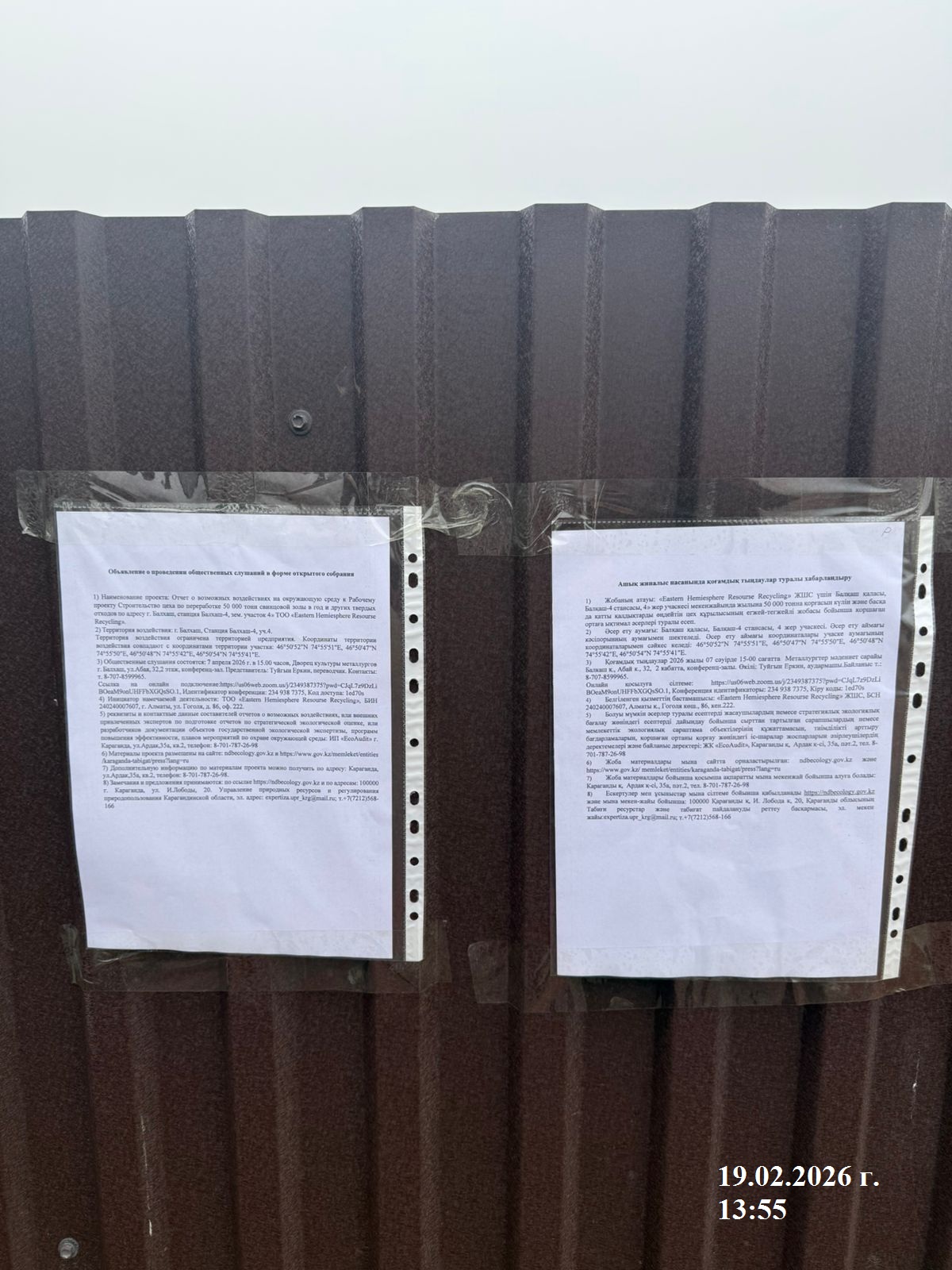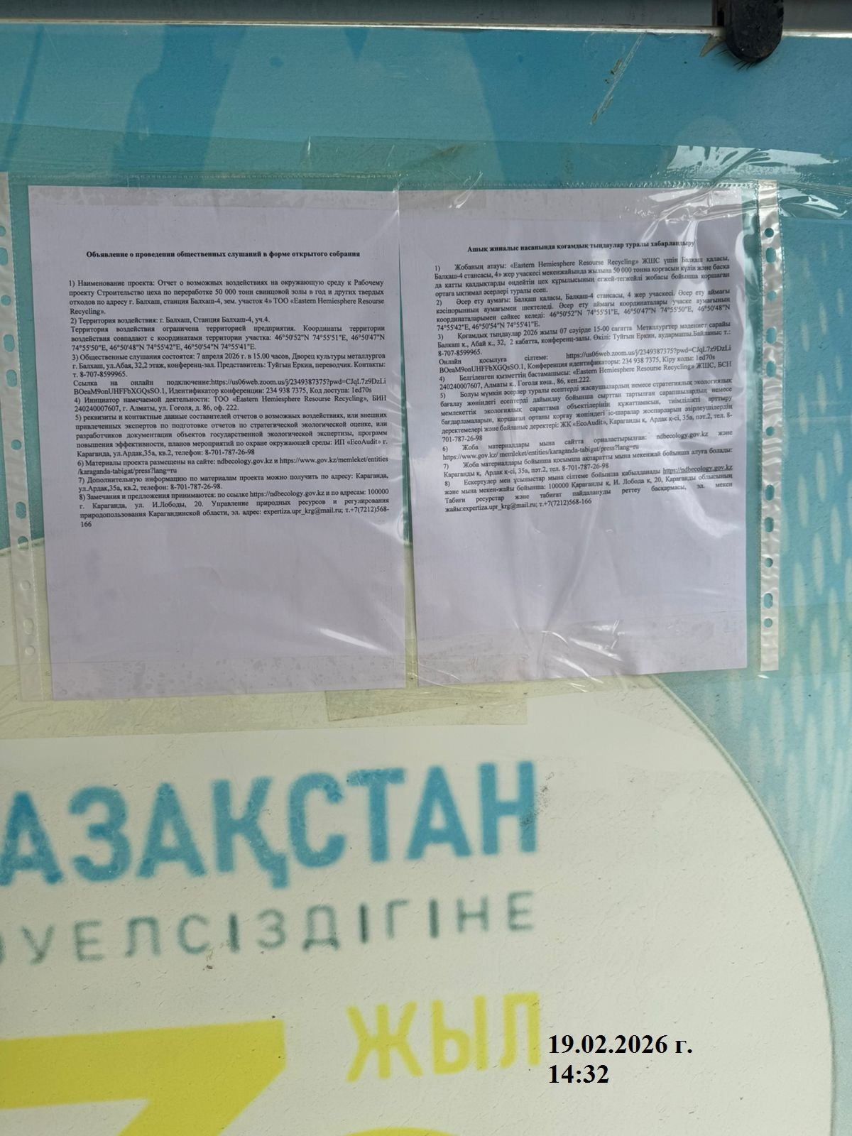 3. Общественные слушания организованны: Управление природных ресурсов и регулирования природопользования Карагандинской области, expertiza.upr_krg@mail.ru,