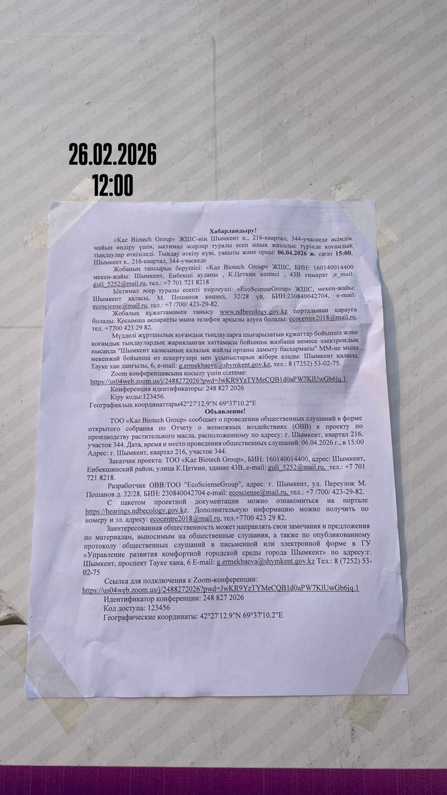 3. Общественные слушания организованны: Управление развития комфортной городской среды г.Шымкент, g.ermekbaeva@shymkent.gov.kz,