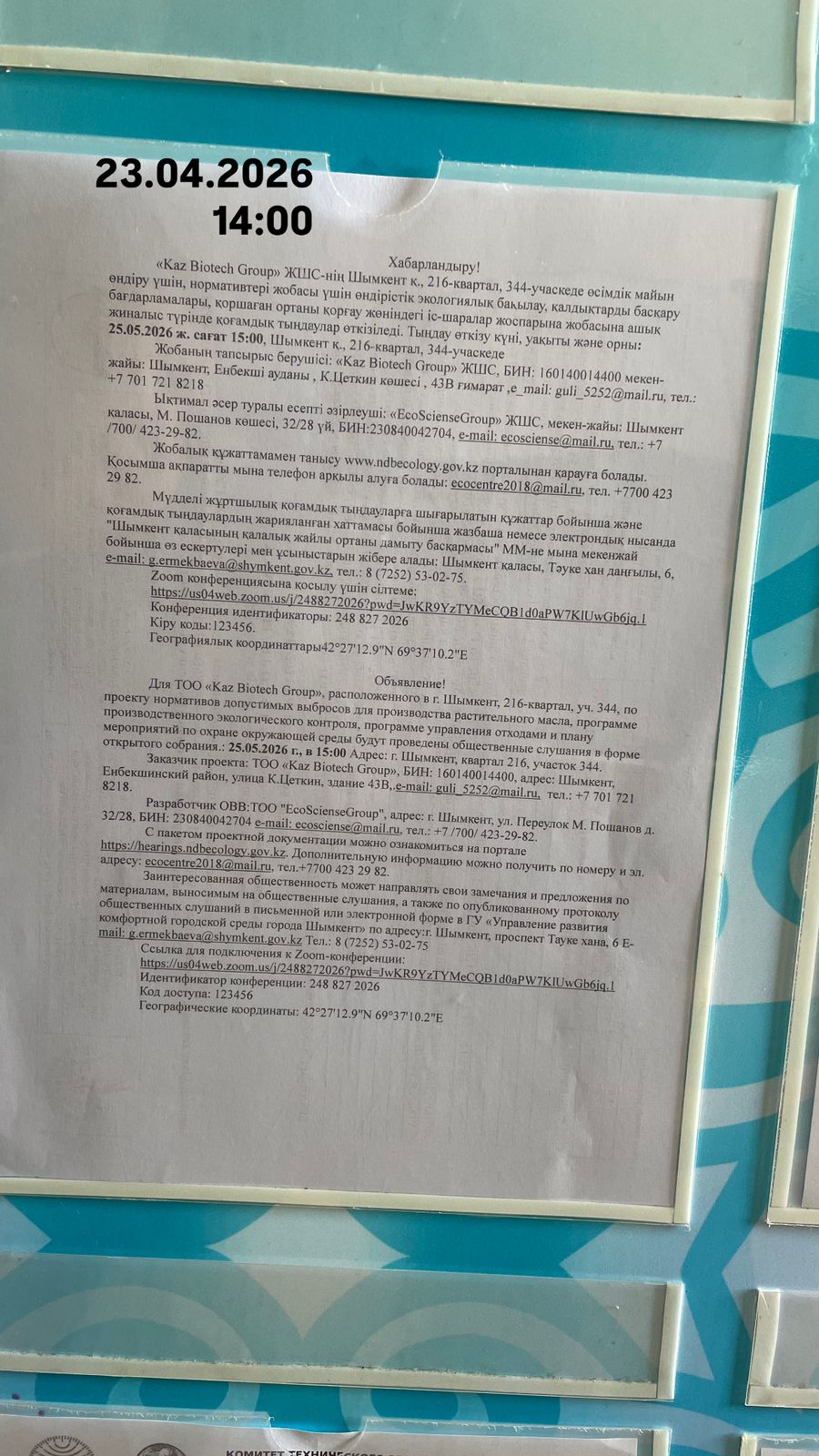 3. Общественные слушания организованны: Управление развития комфортной городской среды г.Шымкент, g.ermekbaeva@shymkent.gov.kz,