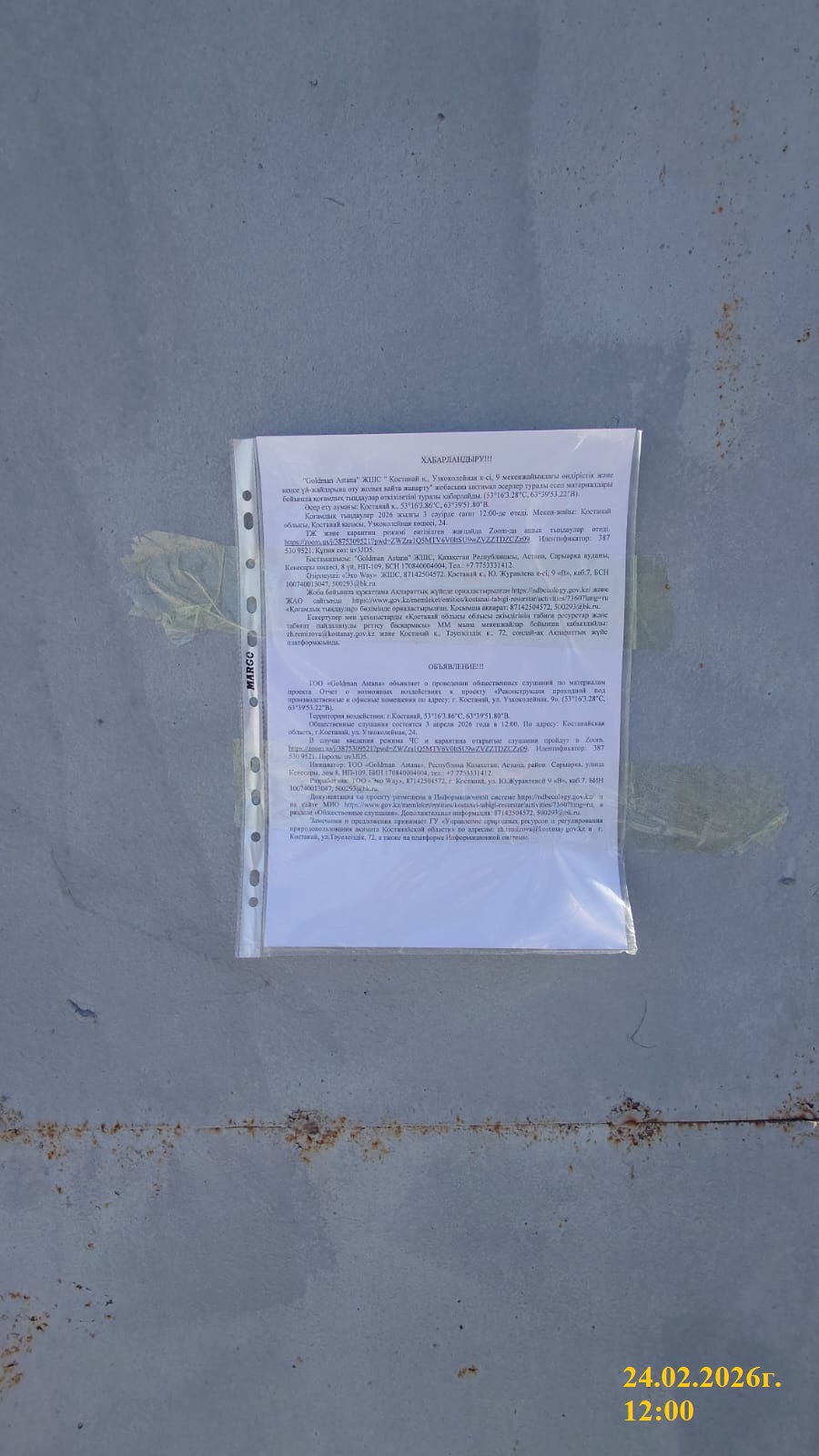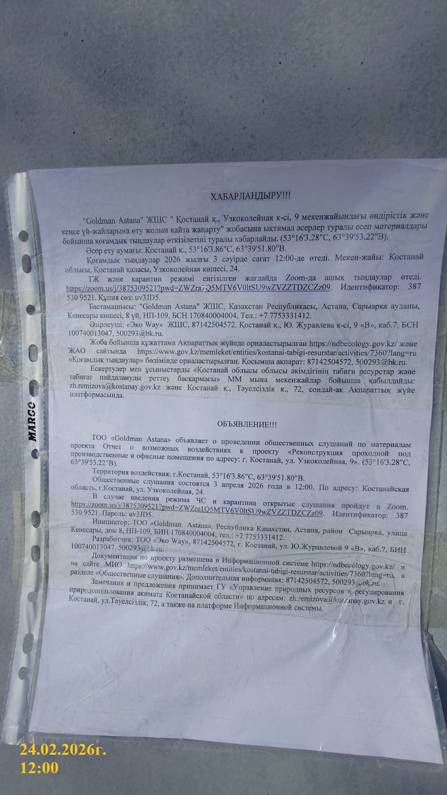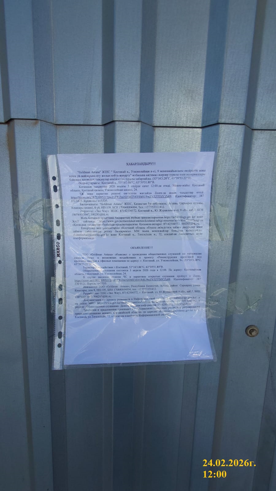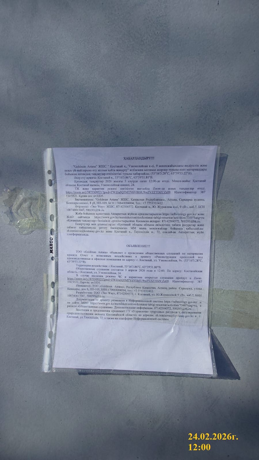 3. Общественные слушания организованны: Управление природных ресурсов и регулирования природопользования Костанайской области, zh.remizova@kostanay.gov.kz, 87142 546166,