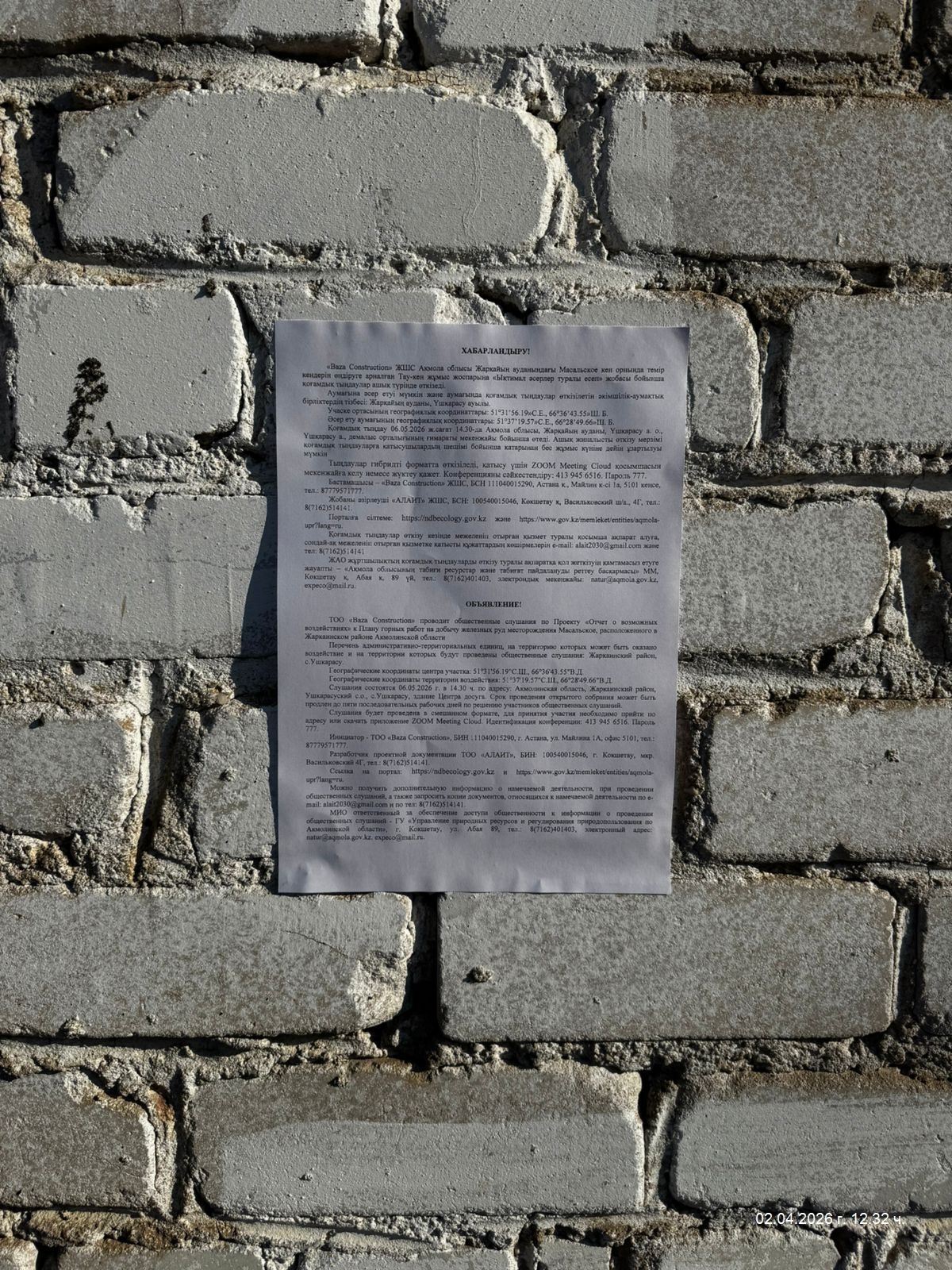 3. Общественные слушания организованны: Управление природных ресурсов и регулирования природопользования Акмолинской области, expeco@mail.ru,