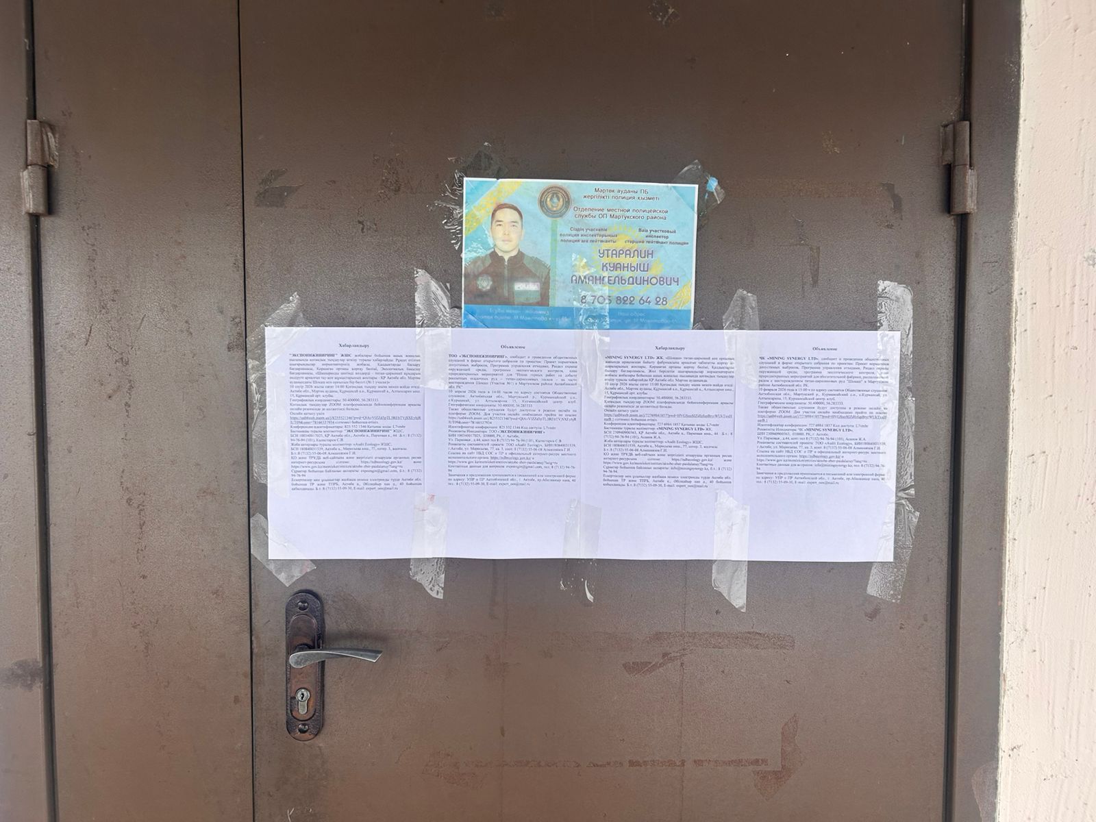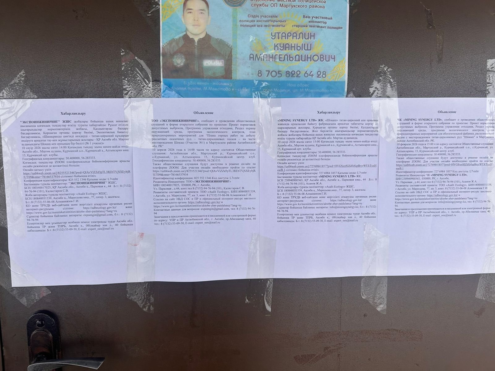 6. Объявление о проведении общественных слушаний на казахском и русском языках будет распространено следующими способами: