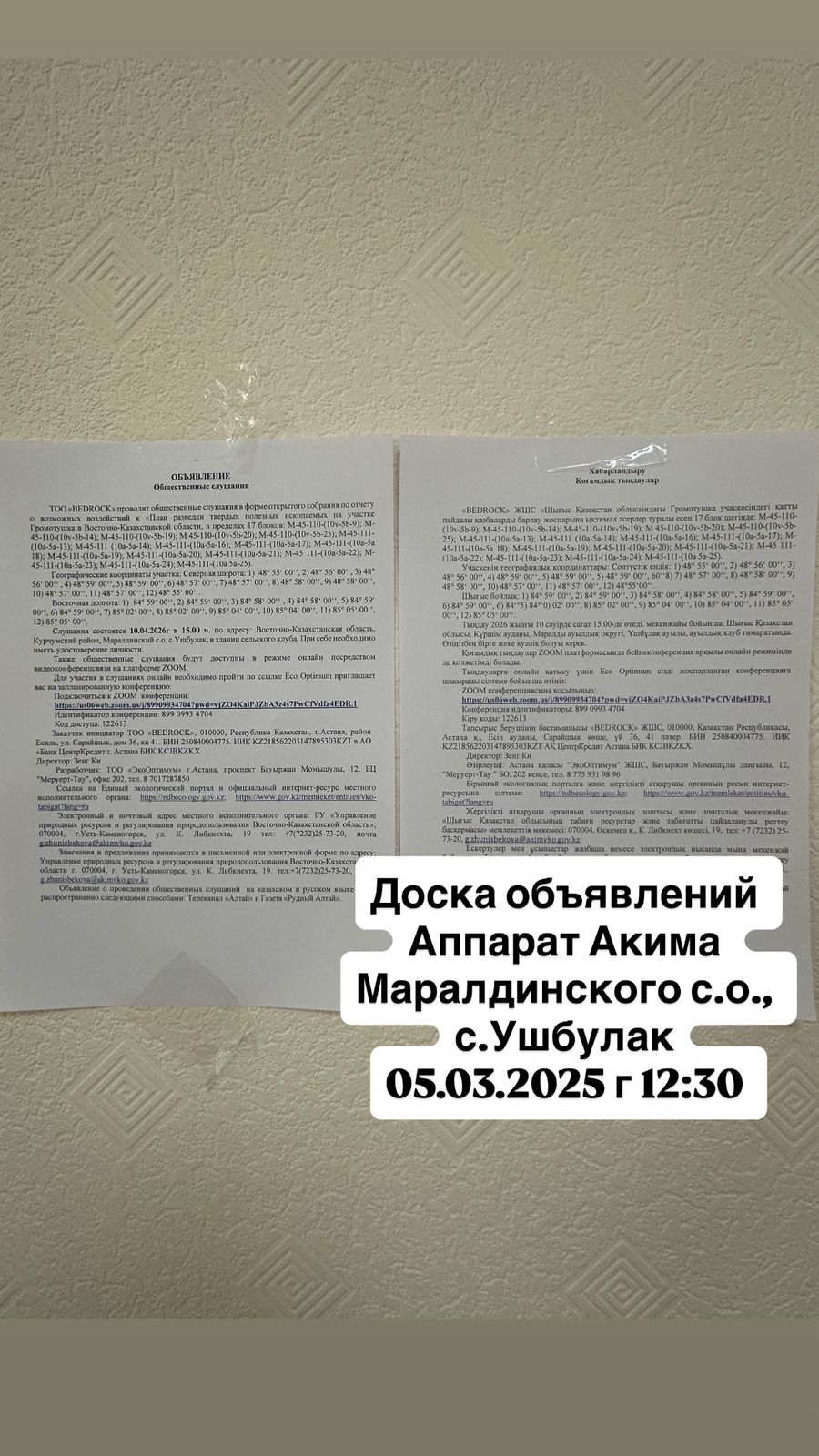1.2. Место проведения: Восточно-Казахстанская область, Курчумский район, Маралдинский с.о., а.Ушбулак, здание сельского клуба, а также онлайн можно подключиться к ZOOM конференции: https://us06web.zoom.us/j/89909934704?pwd=yjZO4KaiPJZbA3z4s7PwCfVdfa4EDR.1 Идентификатор конференции: 899 0993 4704 Код доступа: 122613