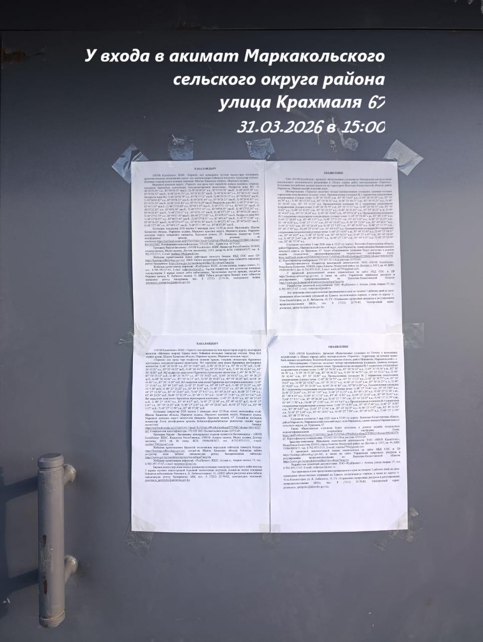 6.3. расположение мест, специально предназначенных для Размещения печатных объявлений (доски объявлений): "Аппарат акима Маркакольского сельского округа района Марқакөл ВКО"