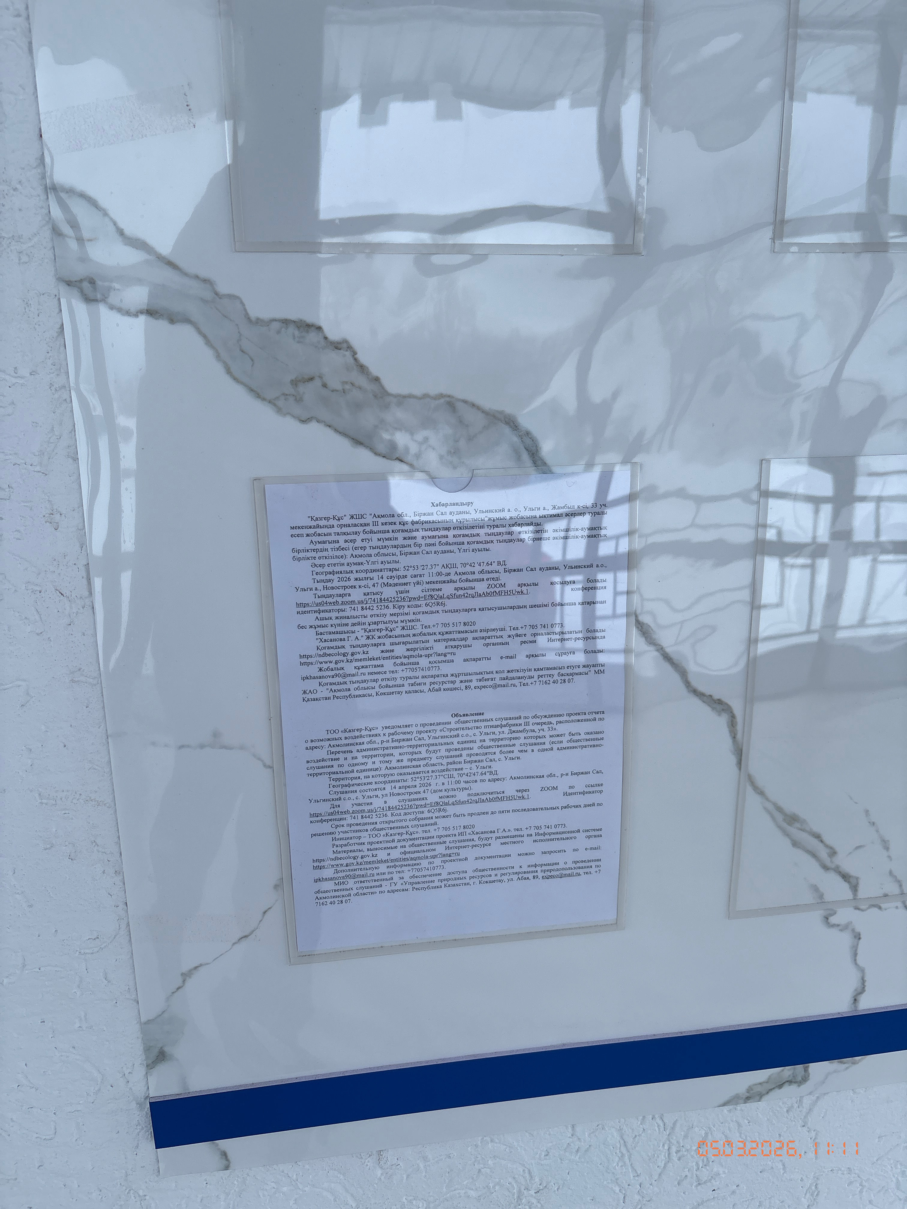 6. Объявление о проведении общественных слушаний на казахском и русском языках будет распространено следующими способами: