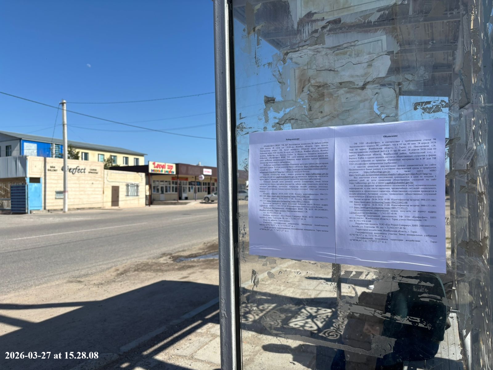 6.3. расположение мест, специально предназначенных для Размещения печатных объявлений (доски объявлений): г. Тараз улица Ниеткалиева 128