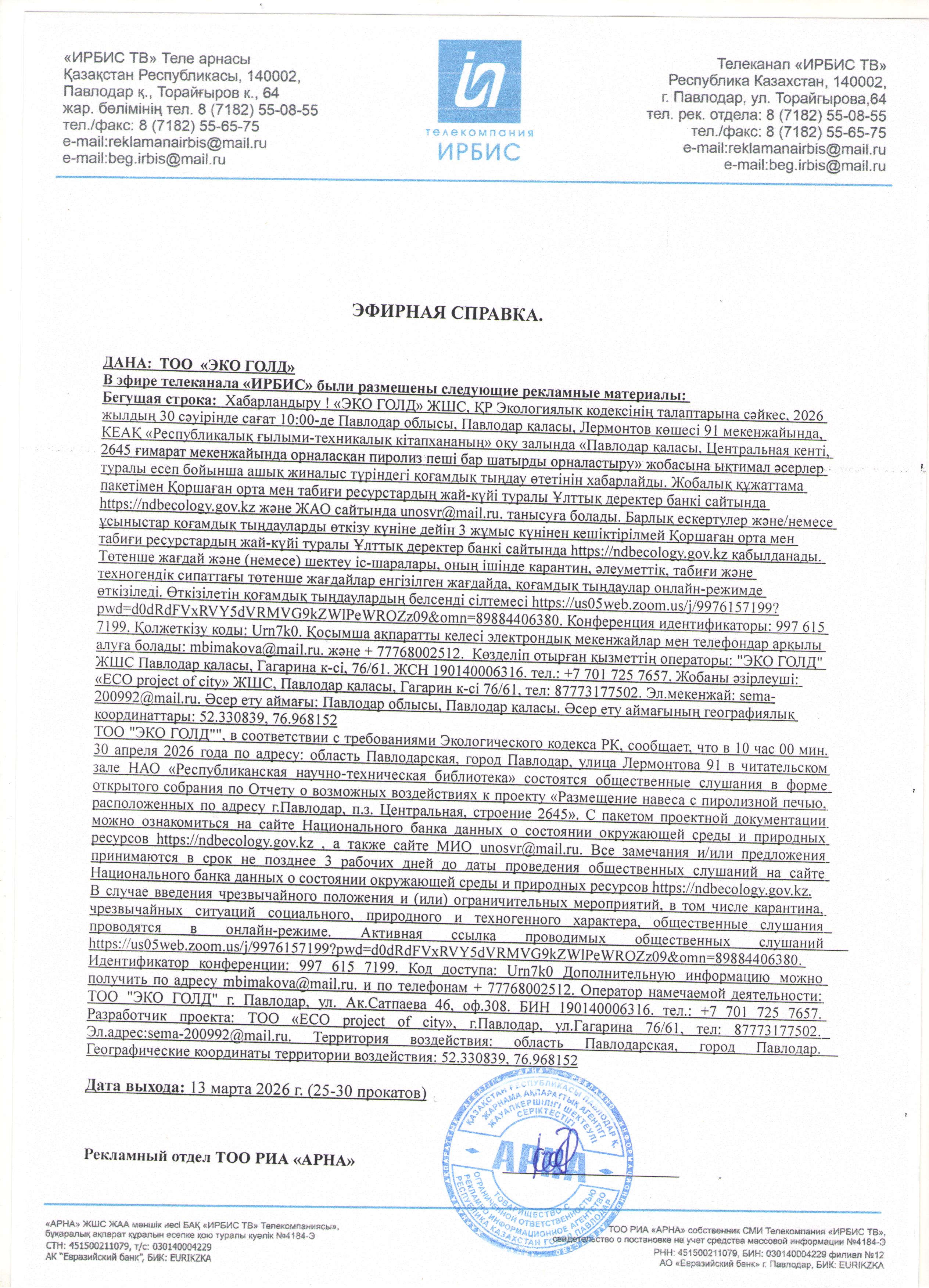 3. Общественные слушания организованны: УПРАВЛЕНИЕ НЕДРОПОЛЬЗОВАНИЯ, ОКРУЖАЮЩЕЙ СРЕДЫ И ВОДНЫХ РЕСУРСОВ ПАВЛОДАРСКОЙ ОБЛАСТИ, unosvr@mail.ru, 87182321681,