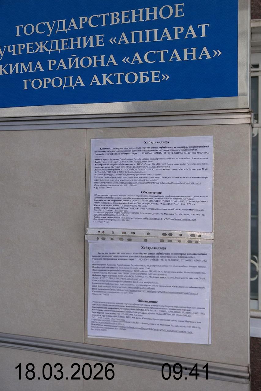 6. Объявление о проведении общественных слушаний на казахском и русском языках будет распространено следующими способами: