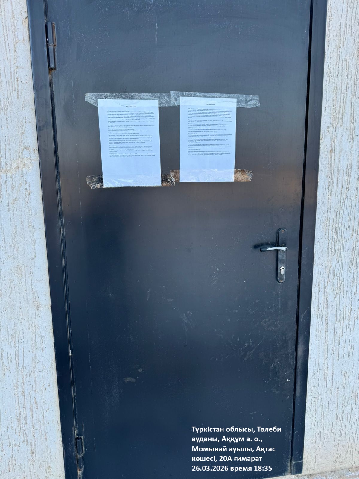 6.3. расположение мест, специально предназначенных для Размещения печатных объявлений (доски объявлений): Туркестанская область, Толебийский район, Аккумский с.о., с.Момынай, улица Актас, здание 20А.