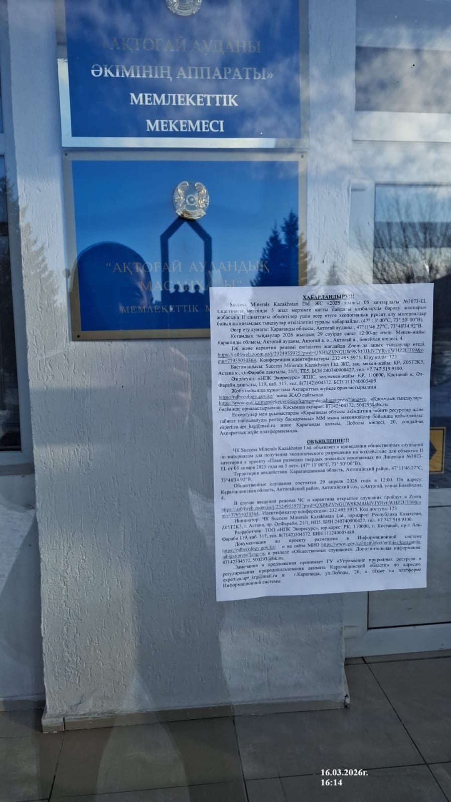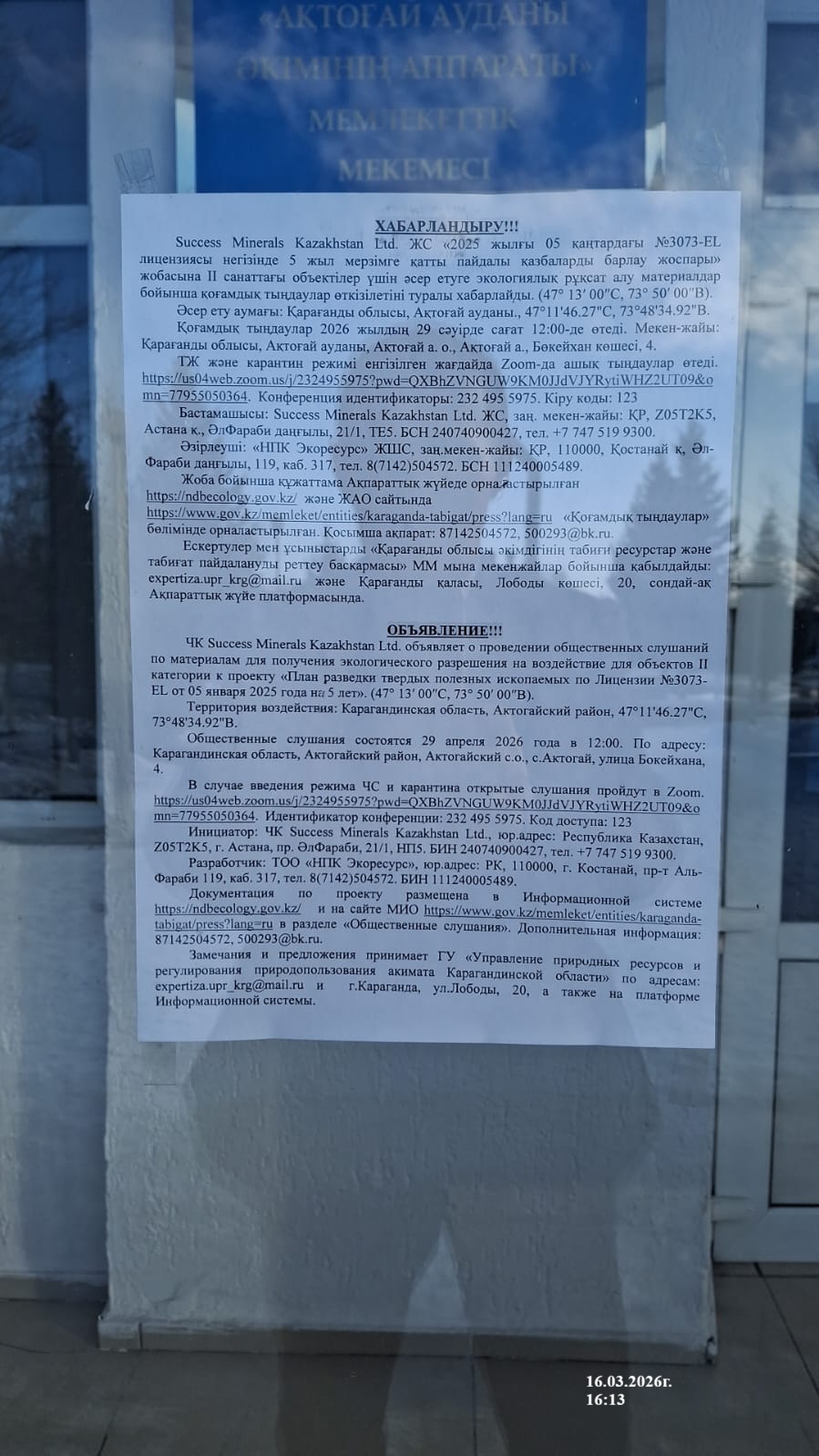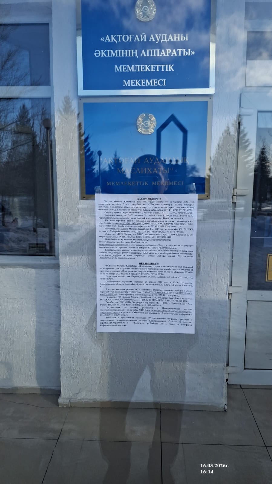 3. Общественные слушания организованны: Управление природных ресурсов и регулирования природопользования Карагандинской области, expertiza.upr_krg@mail.ru,