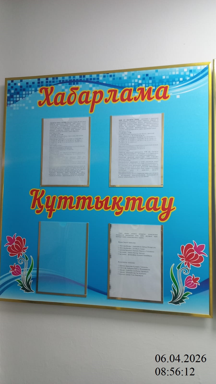 6.3. расположение мест, специально предназначенных для Размещения печатных объявлений (доски объявлений): Доска объявлений аппарата акима г.Аральск