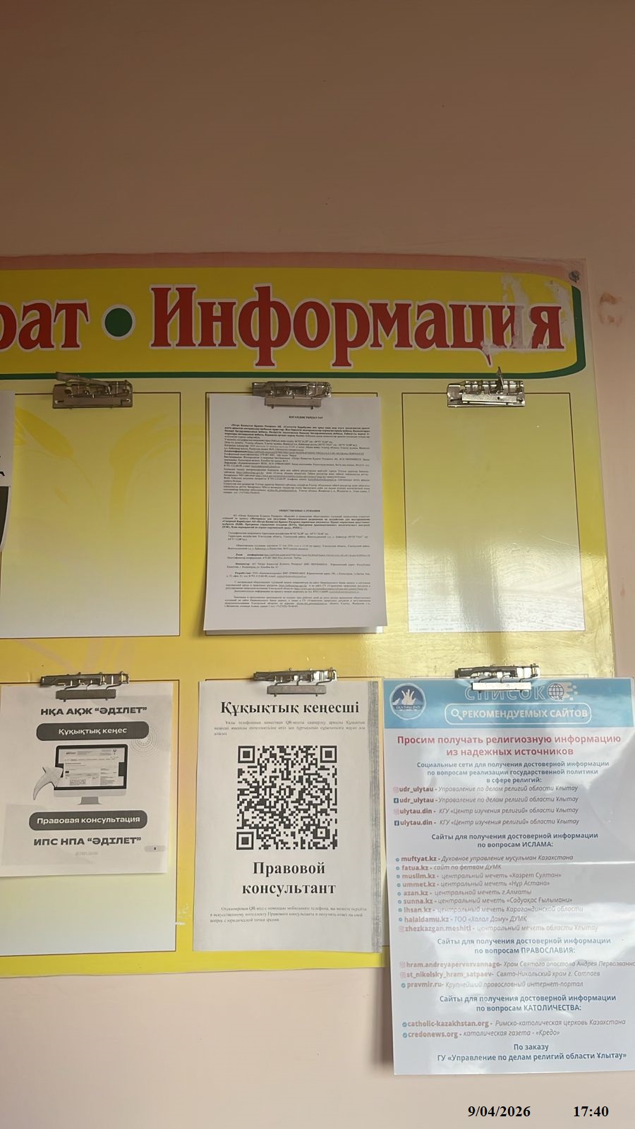 1.4. Описание для подключения к онлайн трансляции при прохождении общественного слушания: в соответствии с пп.4, п.11 прил. 3 Правил, информация о проведении общественных слушаний должна быть распространена на государственном и русском языках на досках объявлений местных исполнительных органов административно-территориальных единиц и в местах, специально предназначенных для размещения объявлений. В связи с чем необходимо дополнительно разместить печатные объявления на досках объявлений в акимате и в местах, специально предназначенных для размещения объявлений.