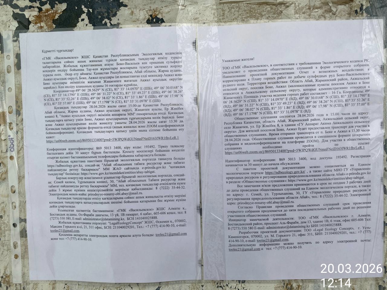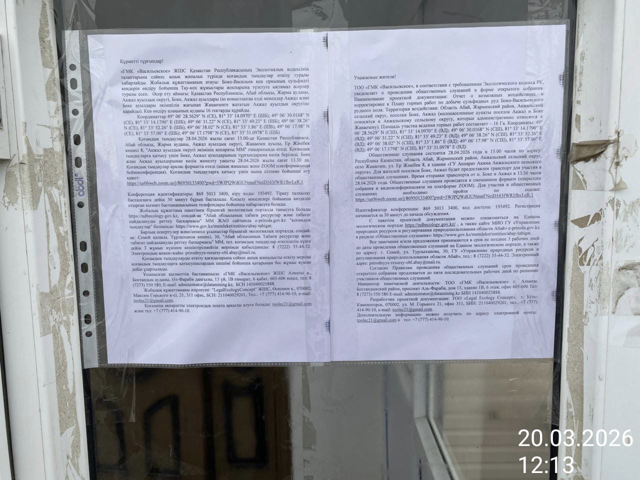 3. Общественные слушания организованны: Главный специалист УПР и ПР область Абай, prirodnyye_resursy_obl.abay@mail.ru,