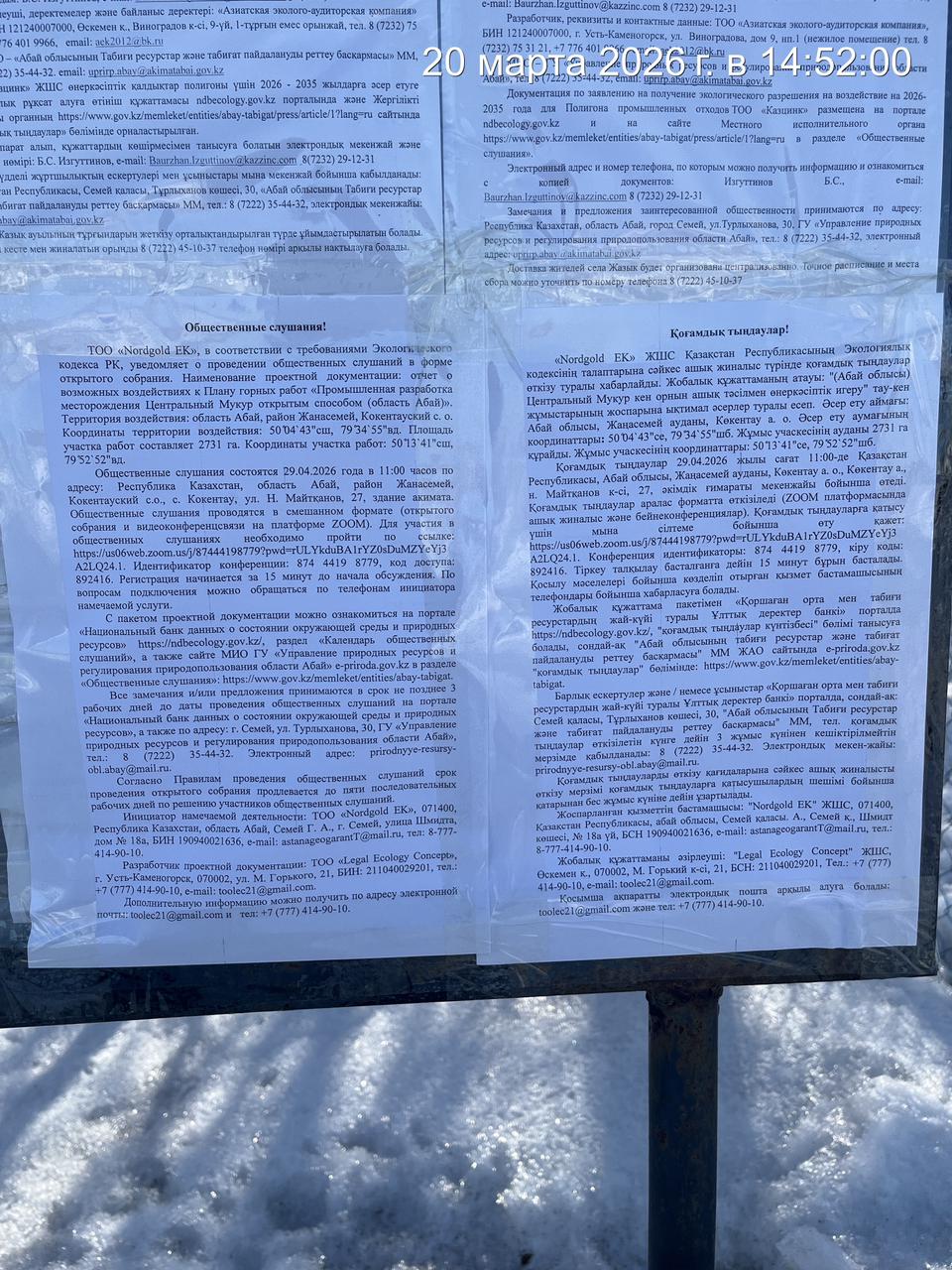 3. Общественные слушания организованны: Главный специалист УПР и ПР область Абай, prirodnyye_resursy_obl.abay@mail.ru,